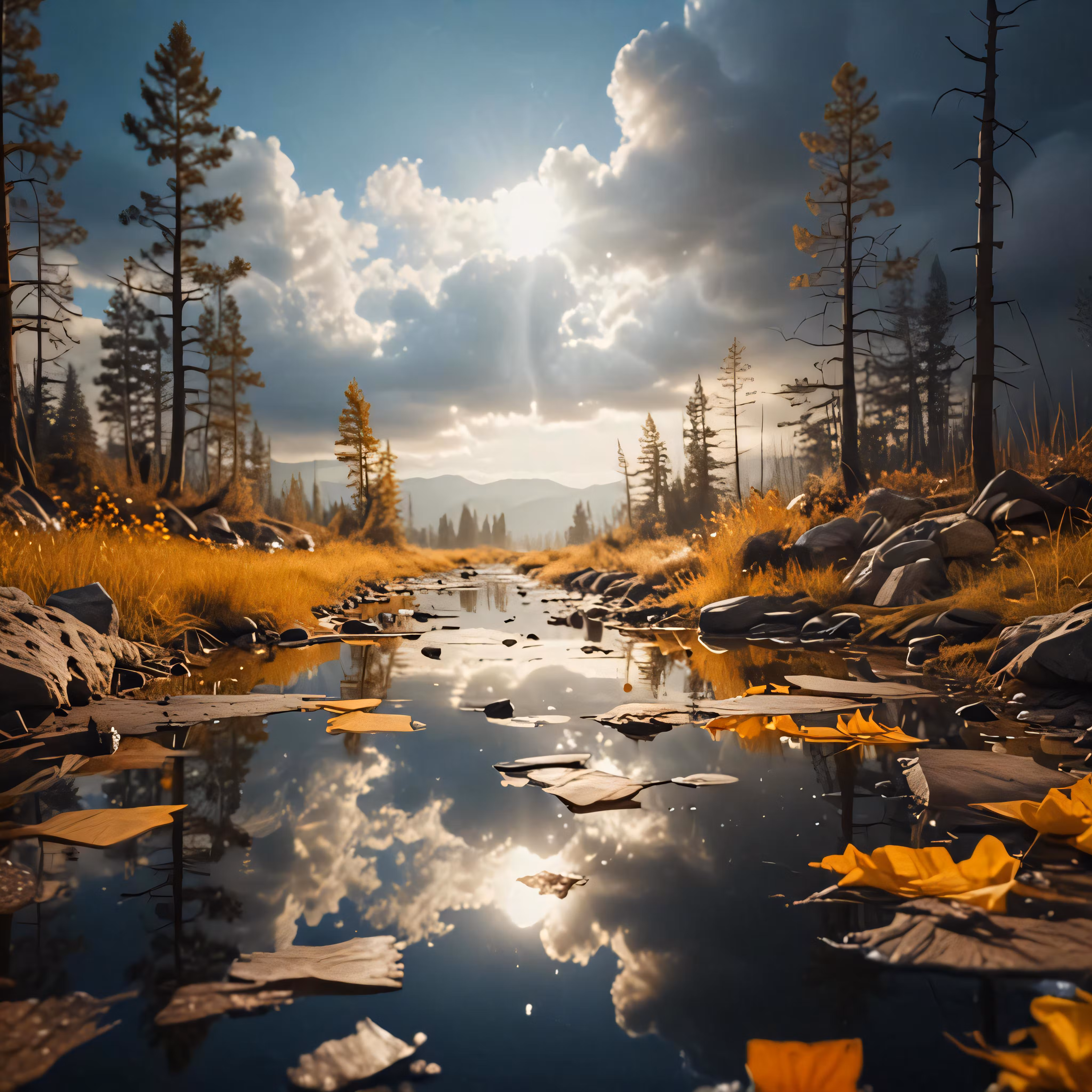 High resolution picture, free to use, water in a creek surrounded by lots of leaf litter