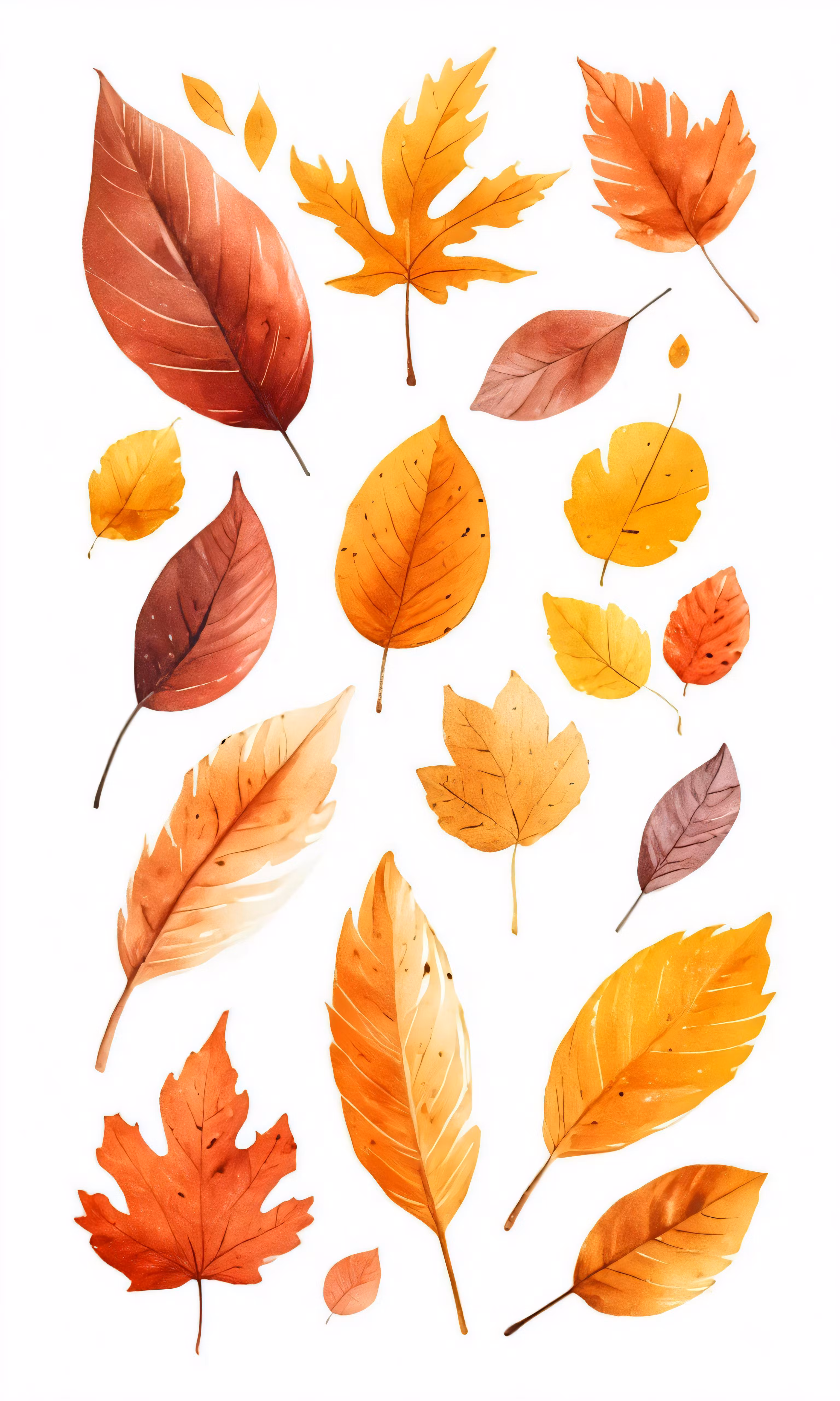 High resolution picture, free to use, watercolor fall leaves on a white background