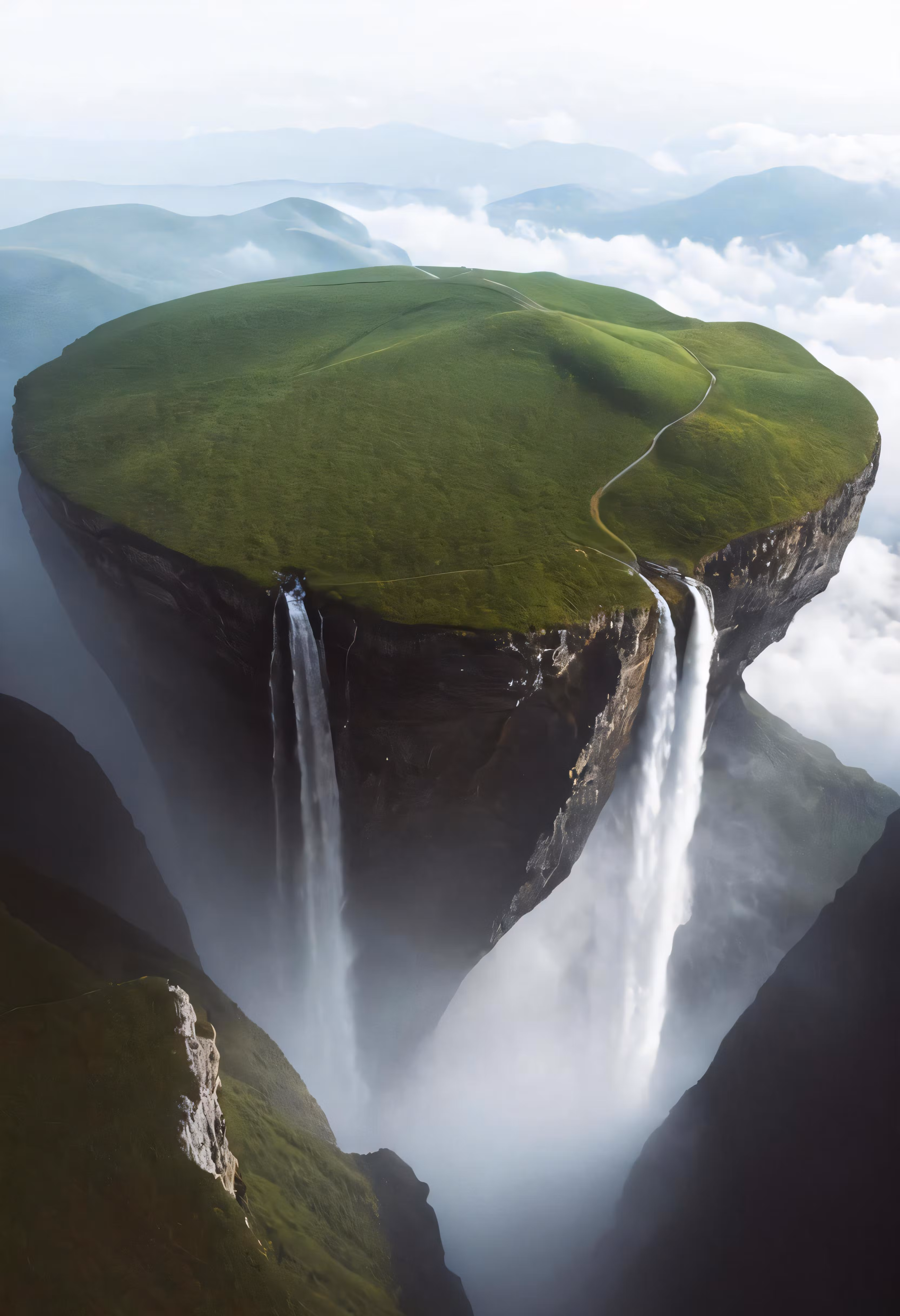 High resolution picture, free to use, waterfalls falling into the air in the clouds