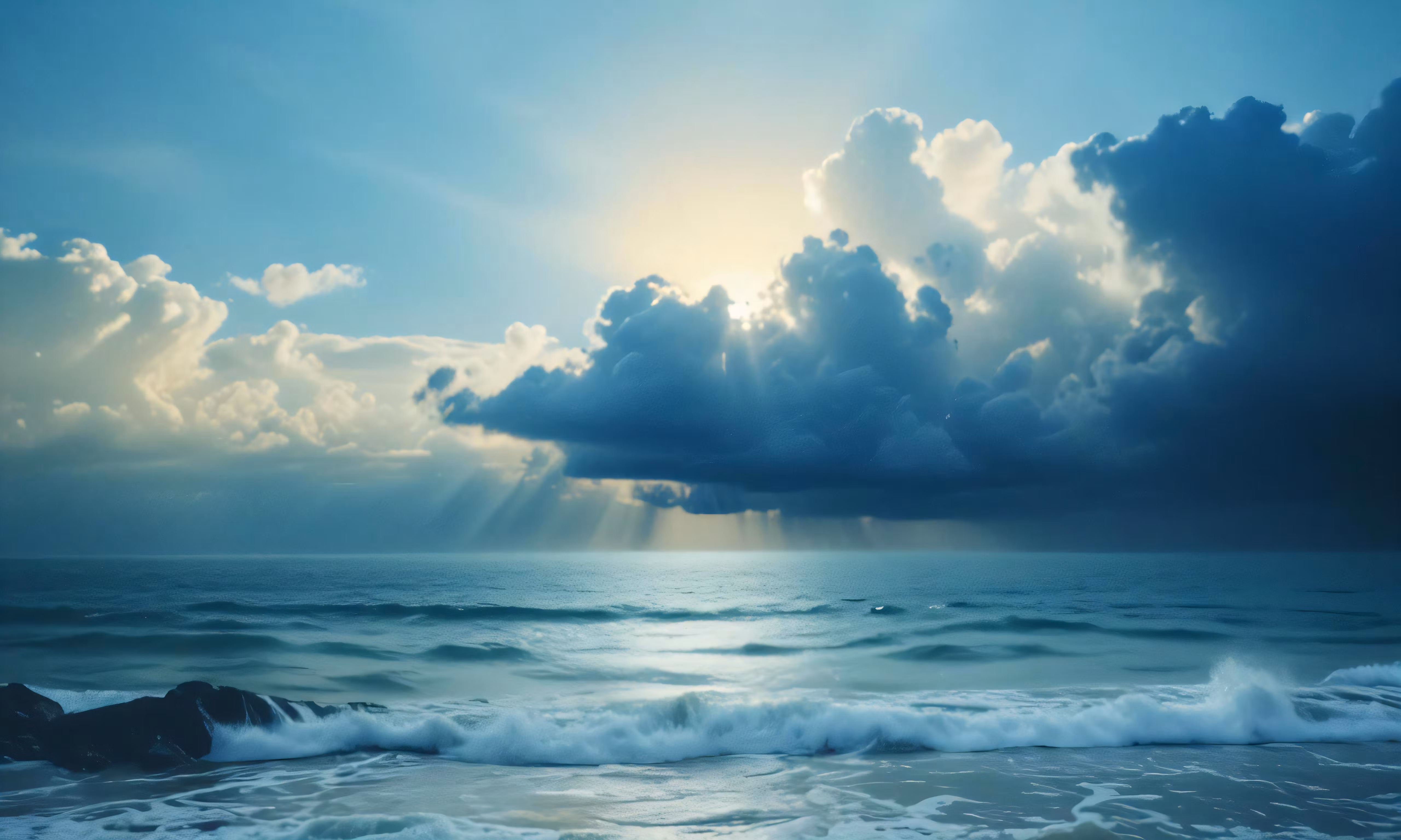 High resolution picture, free to use, waves roll onto the beach in front of a cloud filled sky