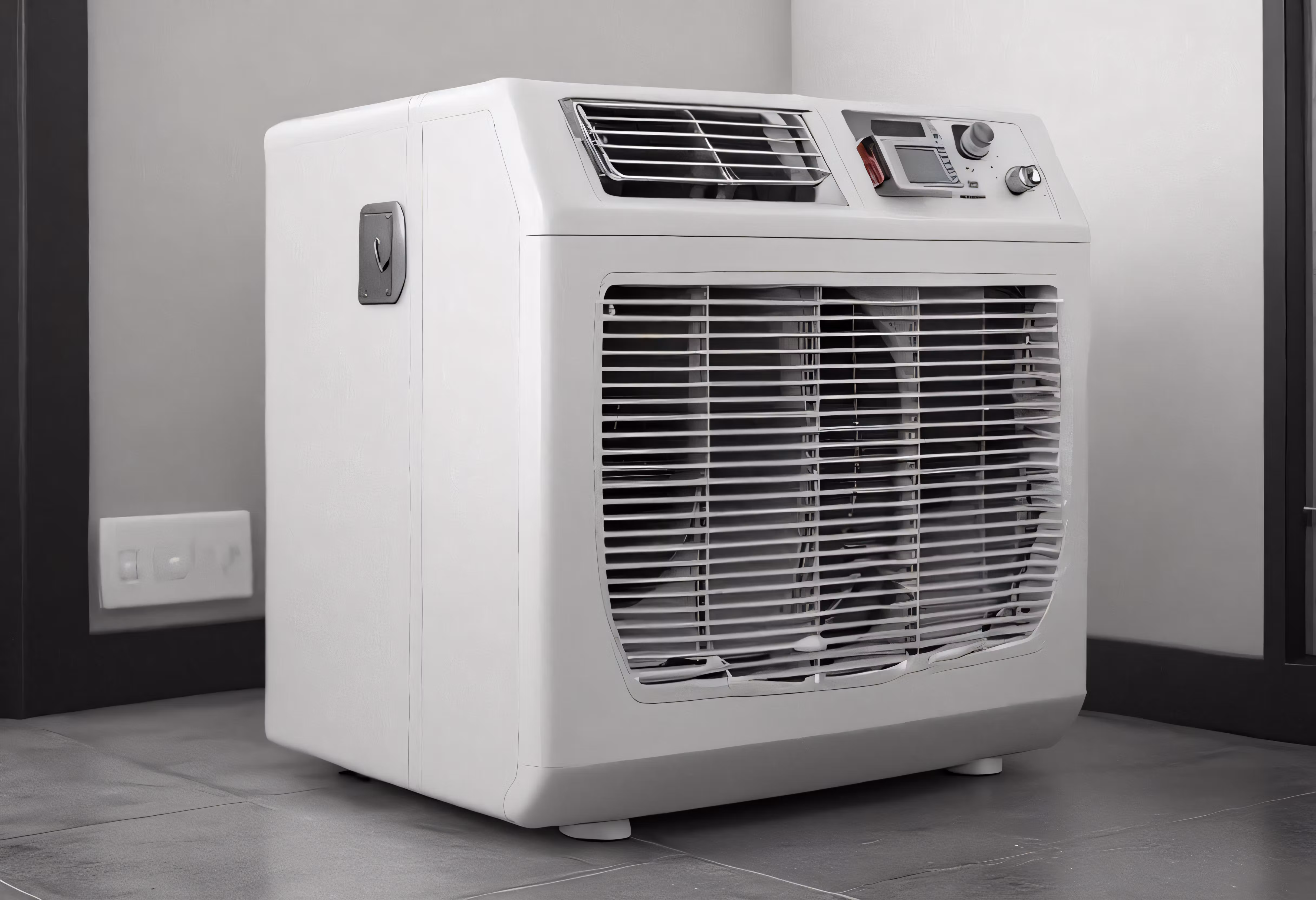 High resolution picture, free to use, white air conditioning unit sitting on tiled floor