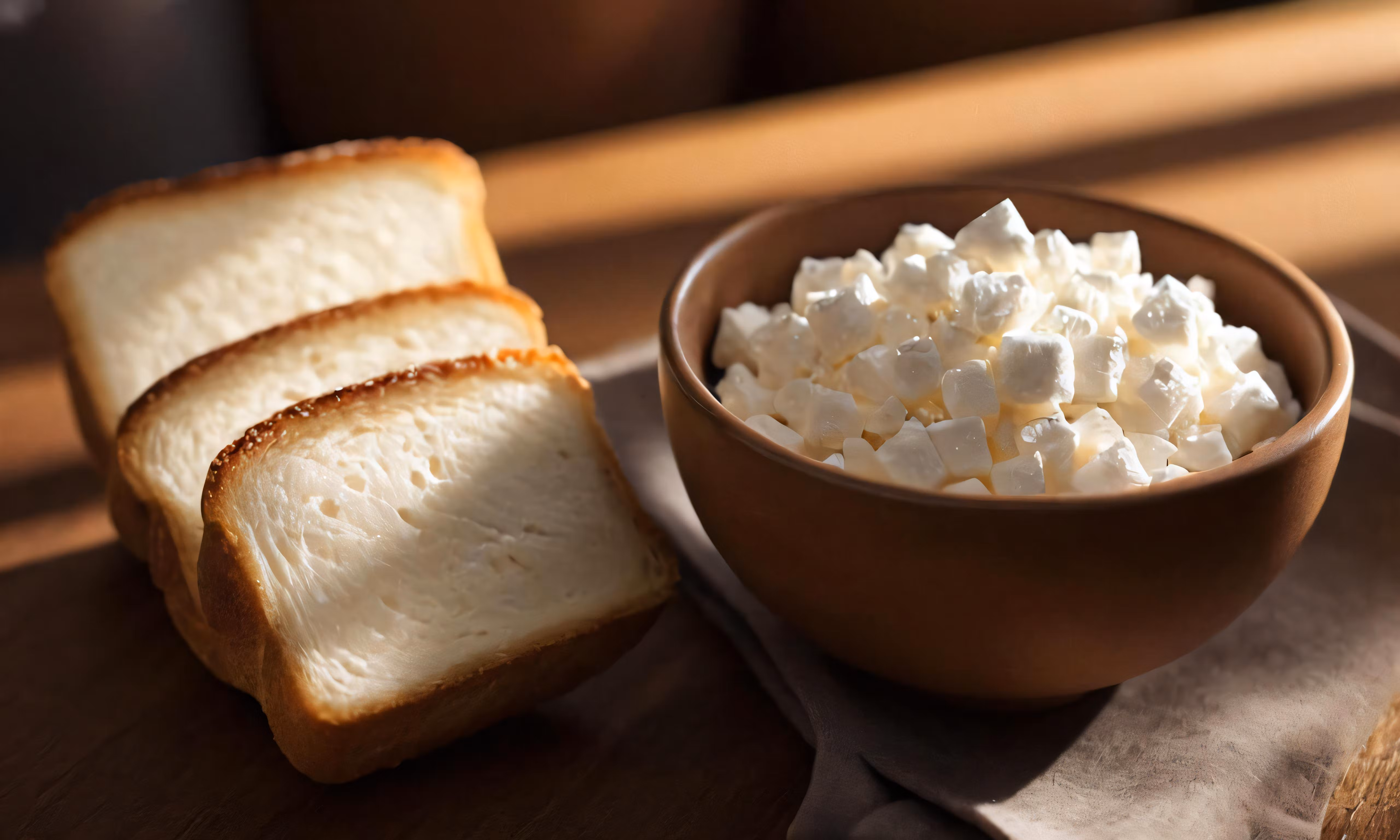High resolution picture, free to use, white bread with cottage cheese in the bowl