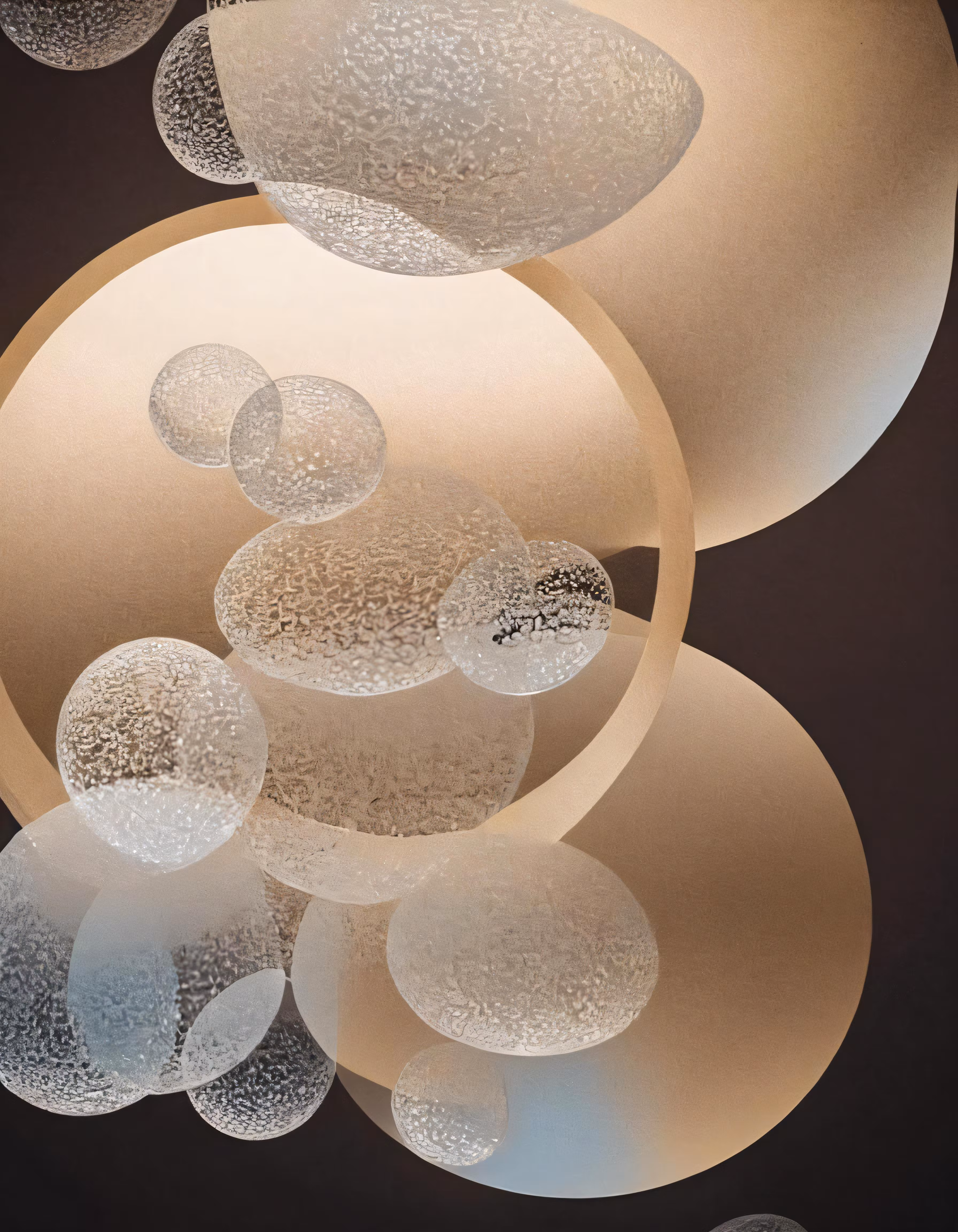 High resolution picture, free to use, white circles hang in the ceiling above the windows