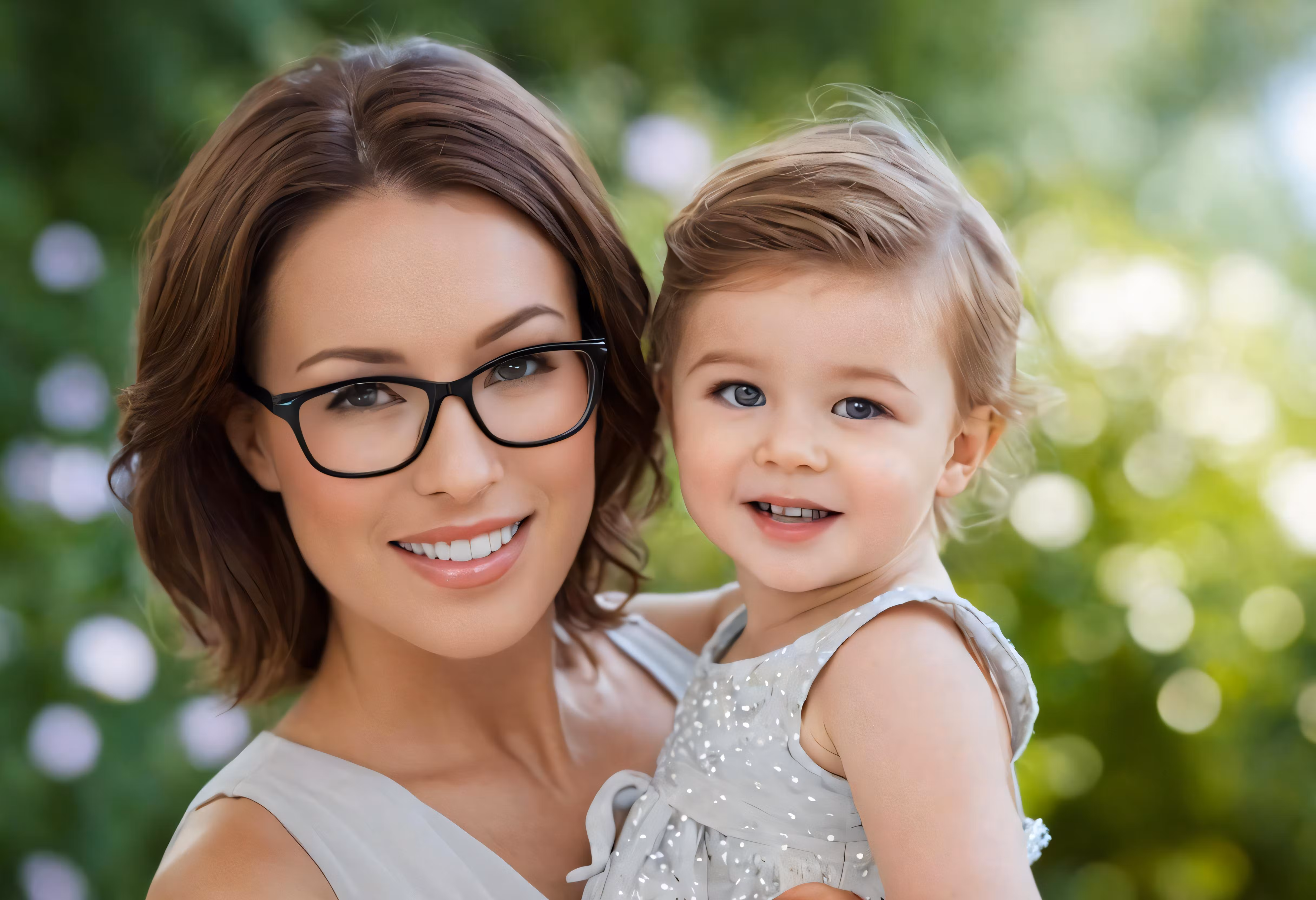 High resolution picture, free to use, woman and child pose for picture at park in daytime