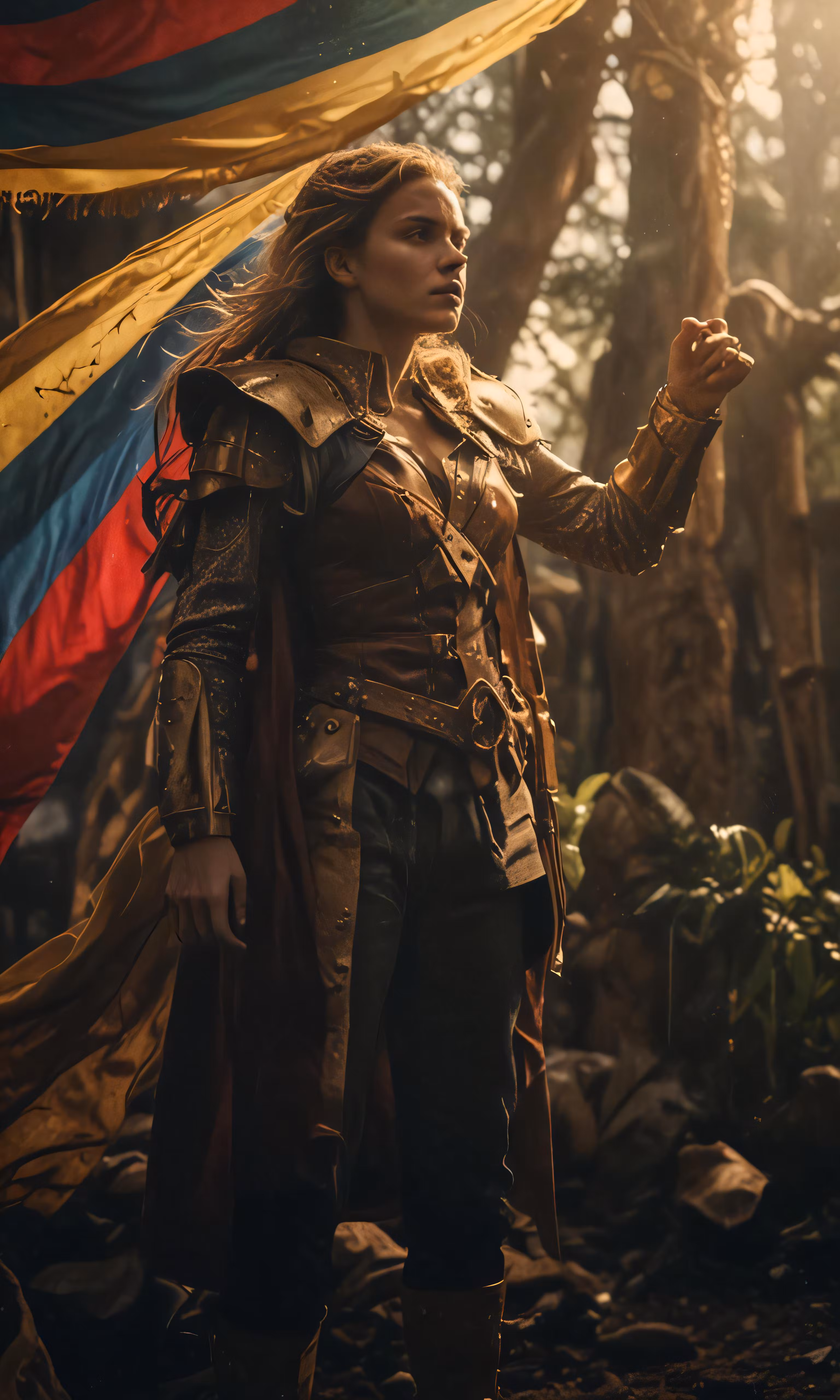 High resolution picture, free to use, woman dressed in costume holding a colorful flag