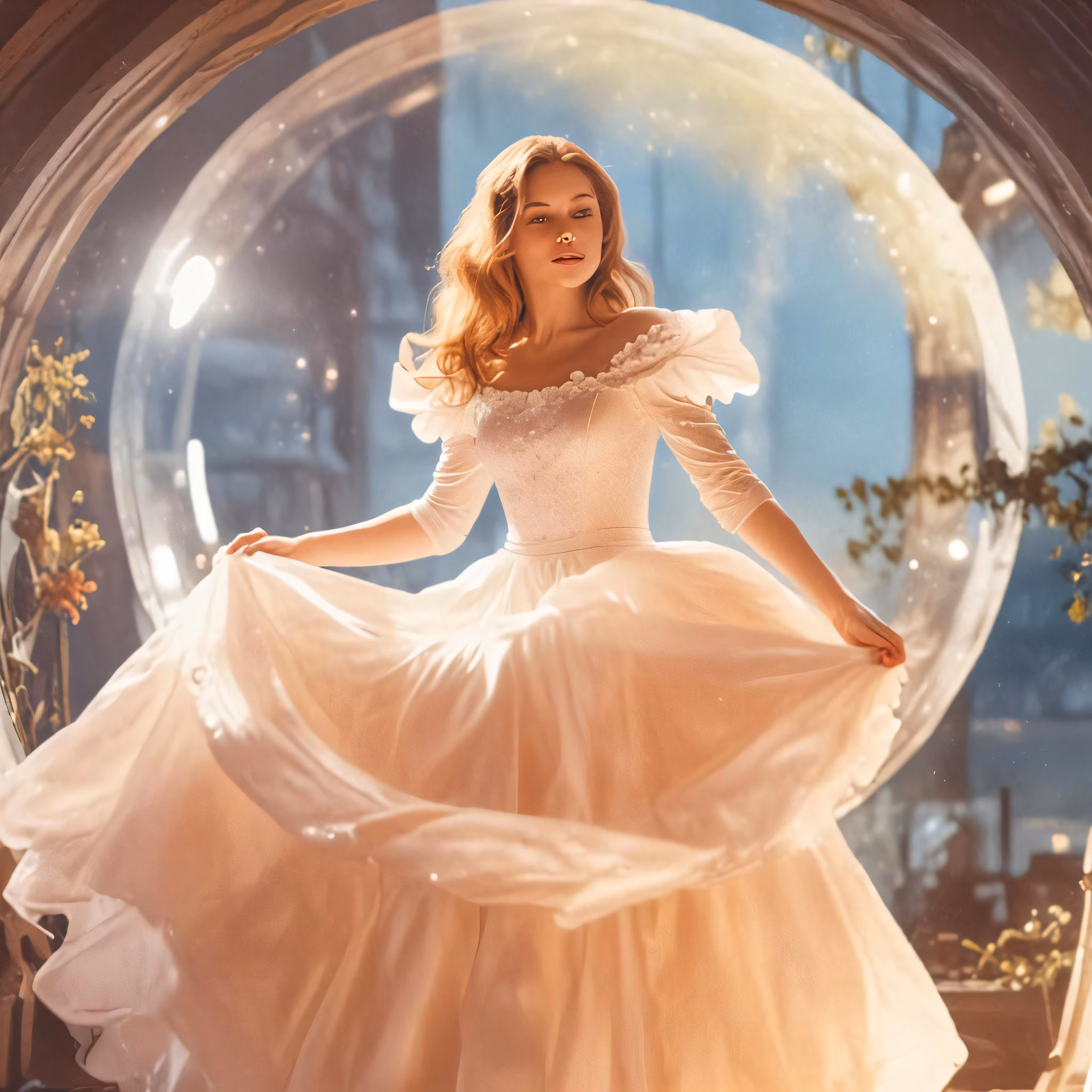 High resolution picture, free to use, woman in a dress with white frock behind a crystal ball