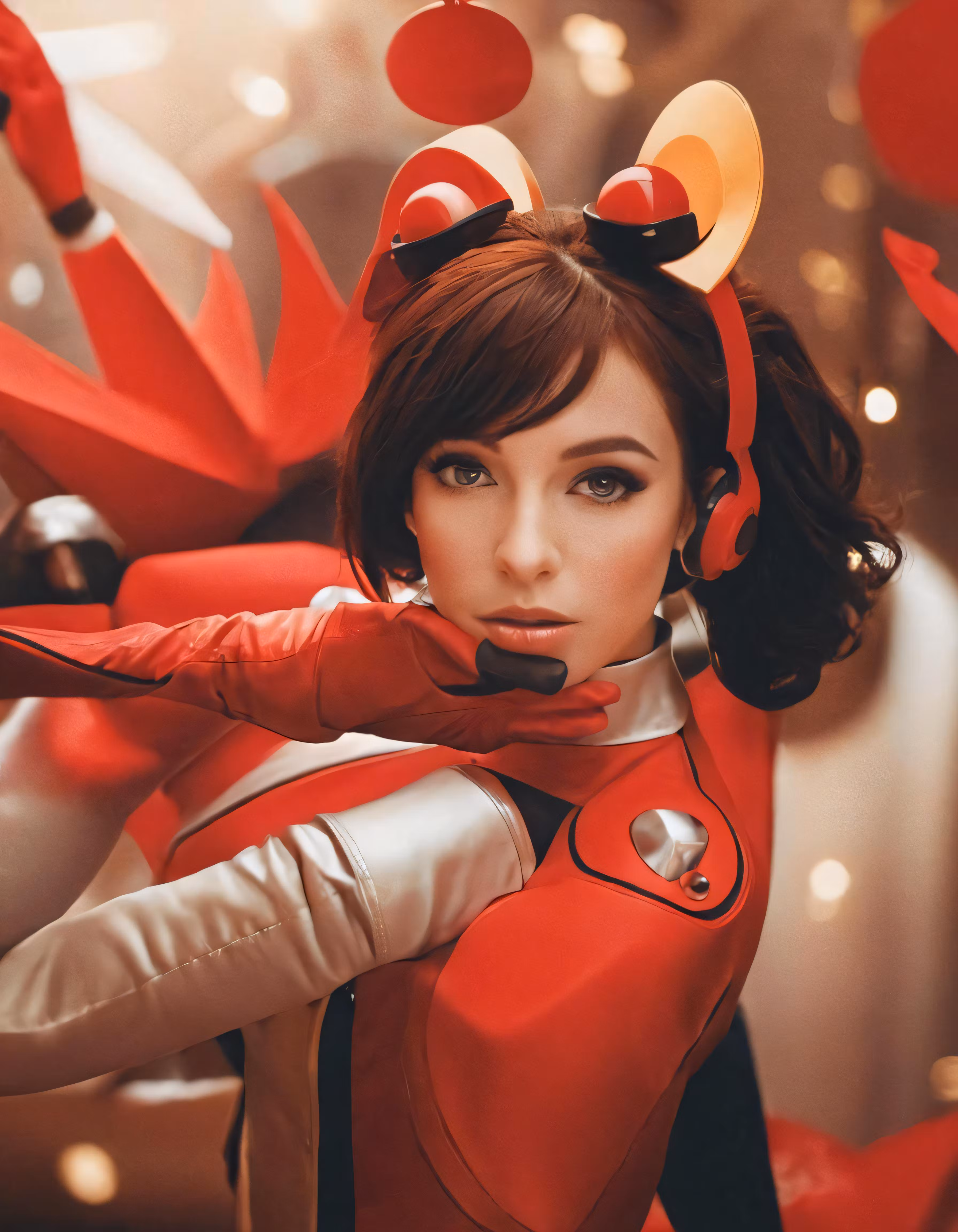 High resolution picture, free to use, woman in a red and white costume with horns on her head