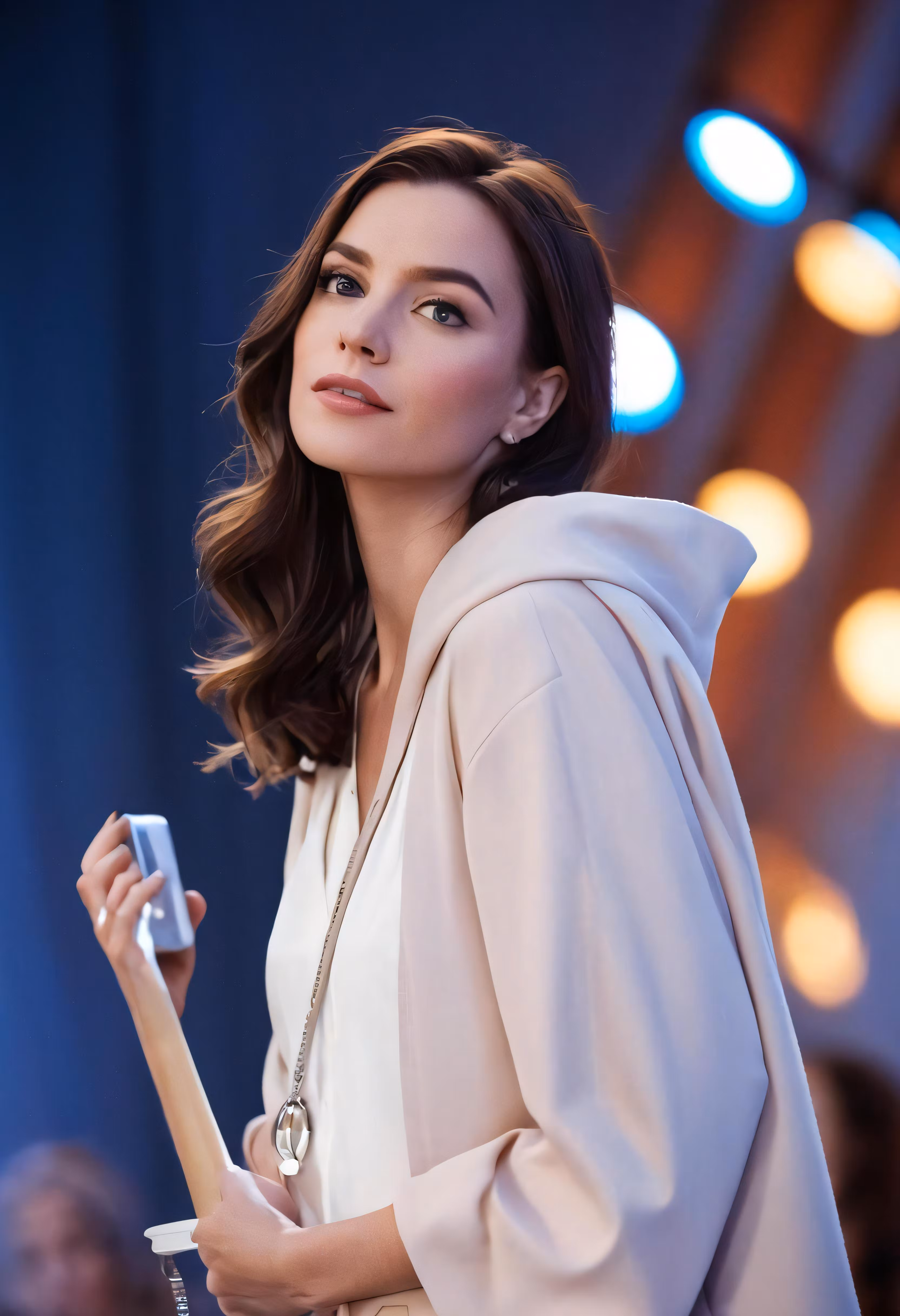 High resolution picture, free to use, woman in beige coat holding a bat with people around