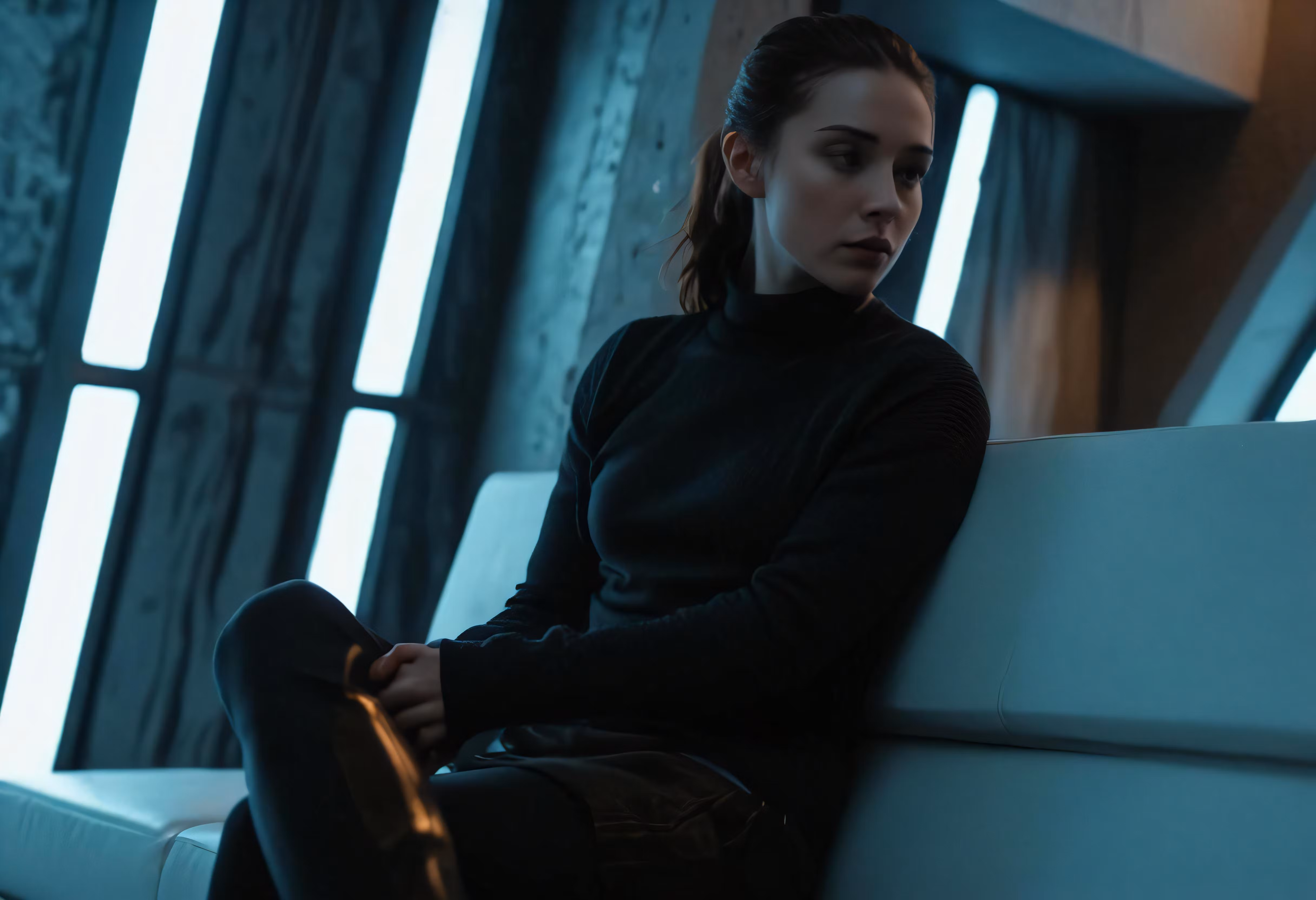 High resolution picture, free to use, woman in black dress seated on a white bench