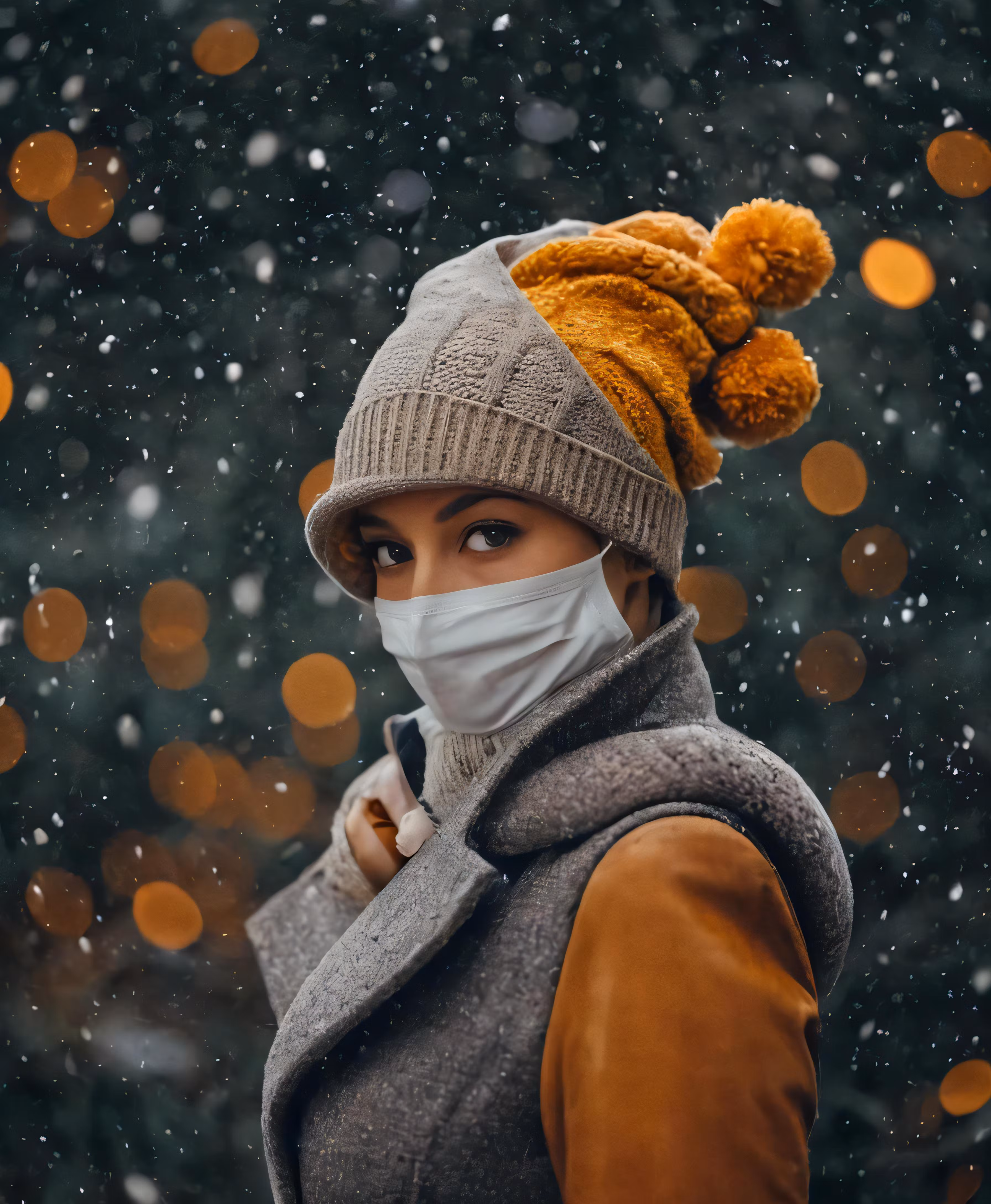 High resolution picture, free to use, woman in cold clothing and hat covering her face