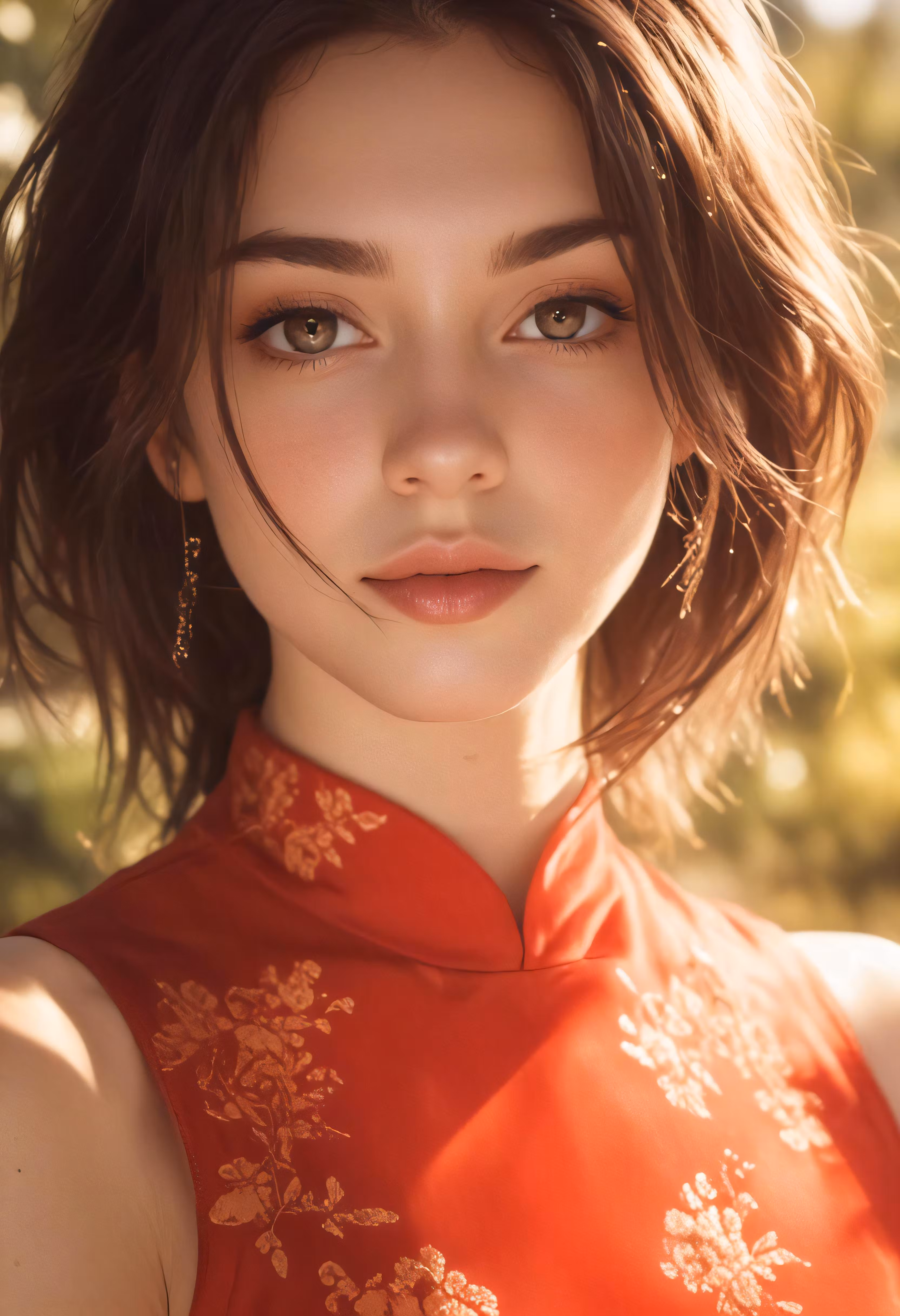 High resolution picture, free to use, woman in red with large gold hoop earrings