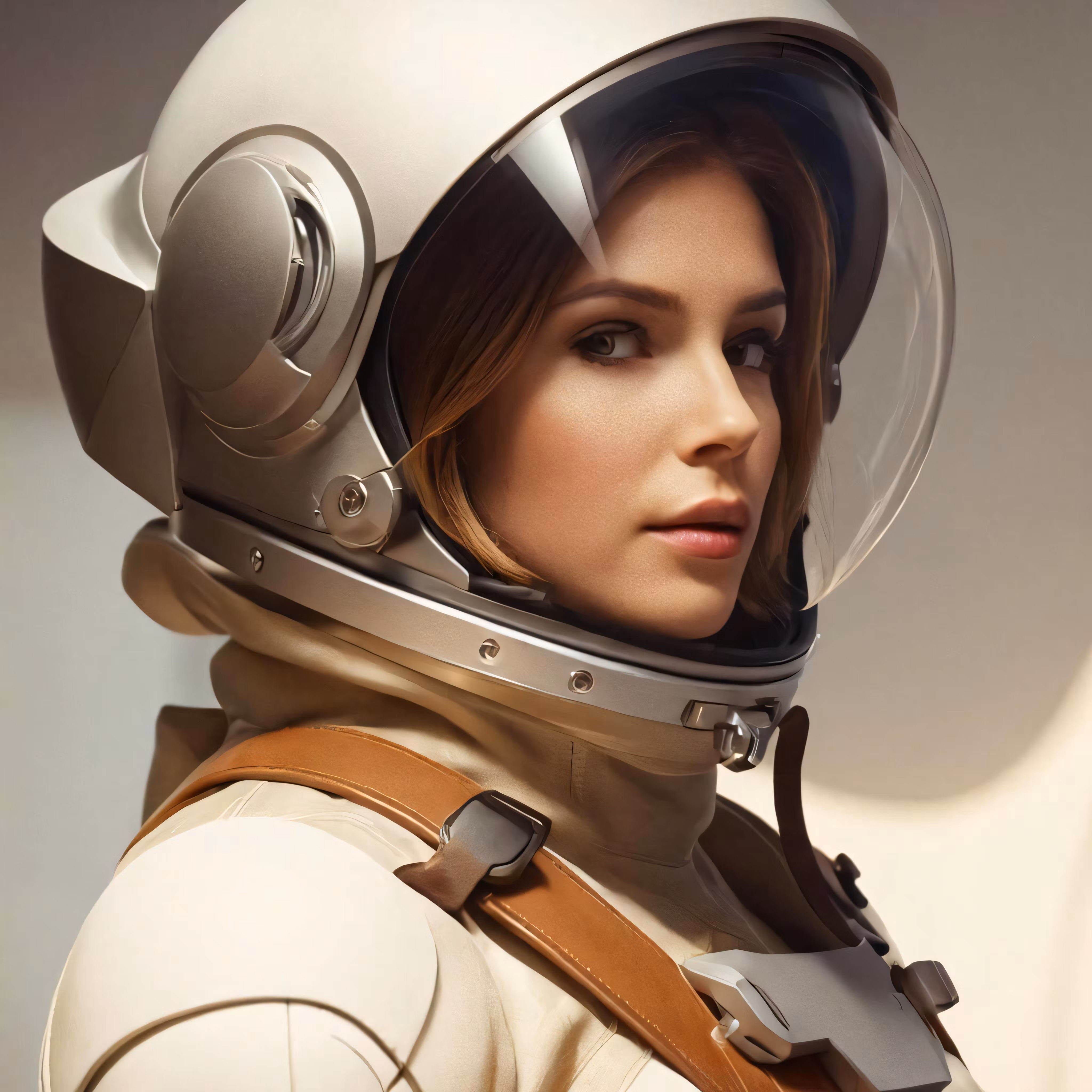 High resolution picture, free to use, woman in white astronaut suit with a helmet