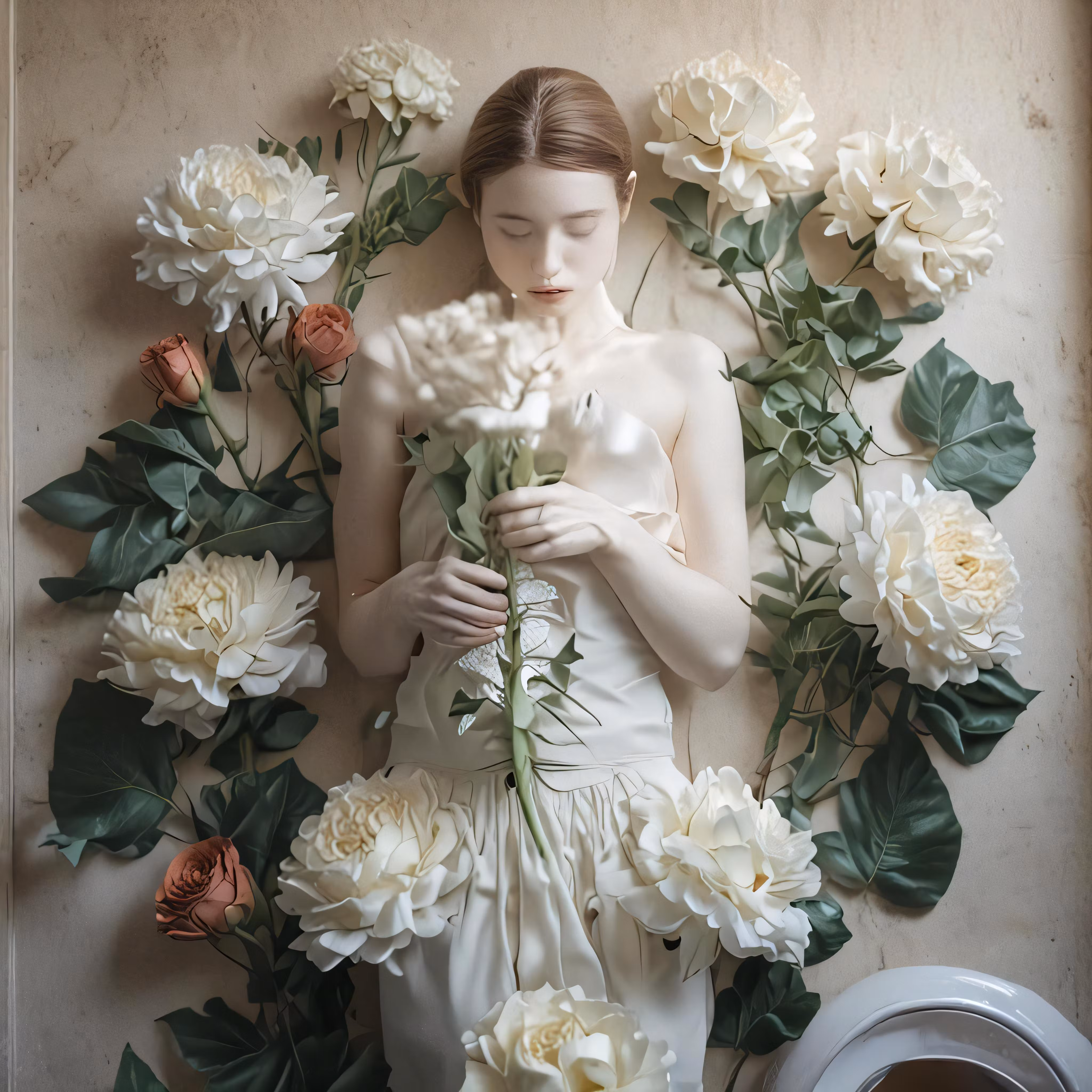 High resolution picture, free to use, woman in white dress surrounded by white flowers