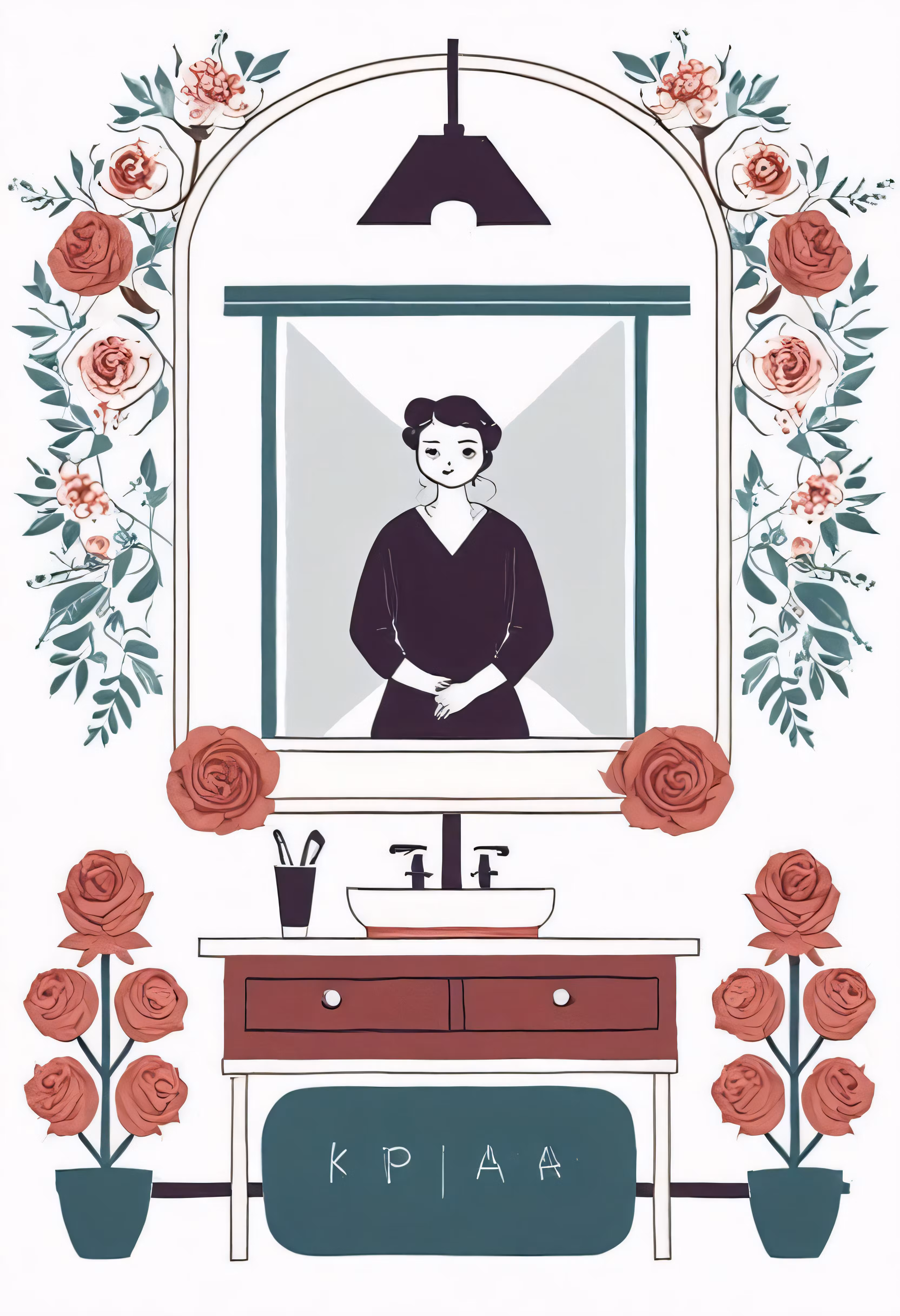 High resolution picture, free to use, woman sitting in bathroom with flowers