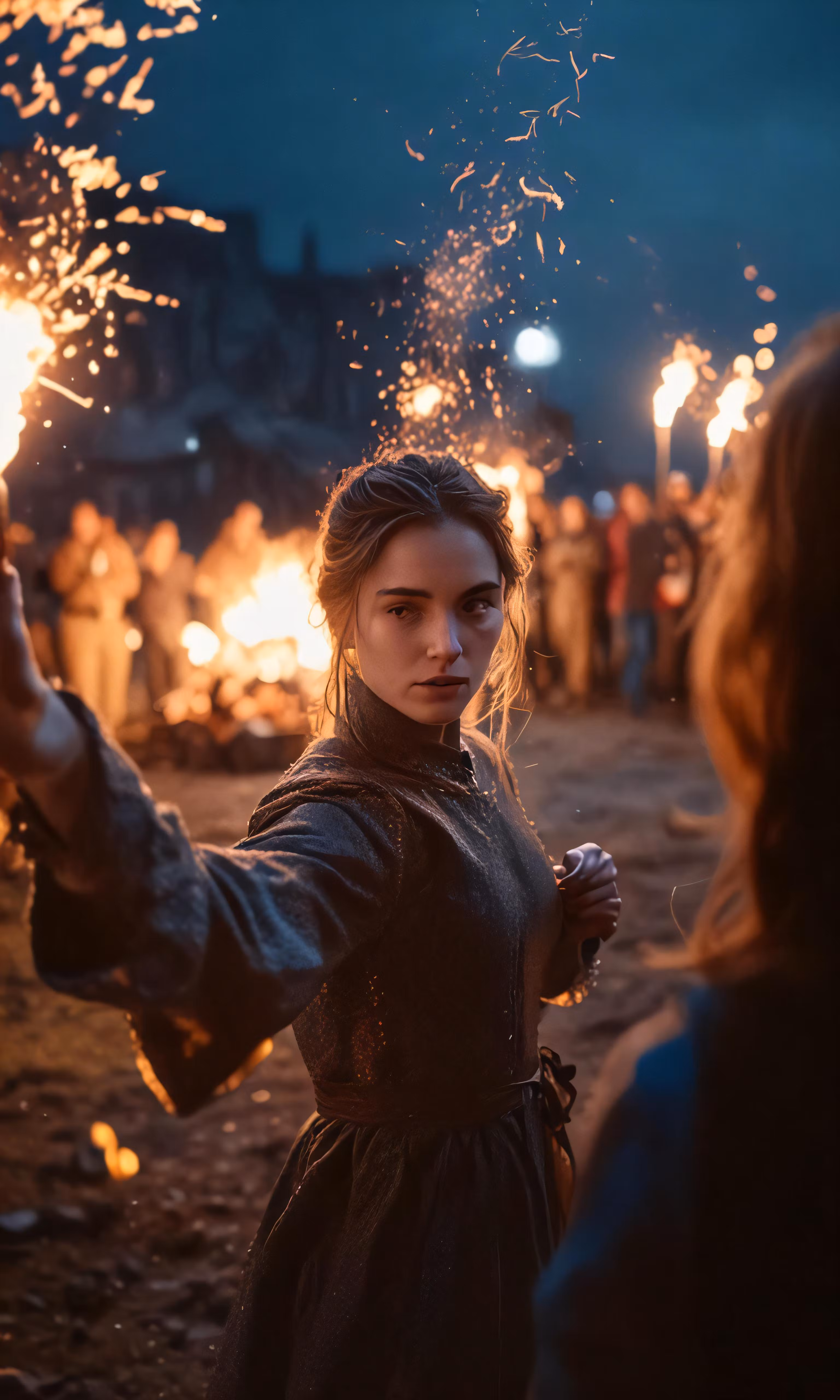 High resolution picture, free to use, woman wearing a black gown holding firework