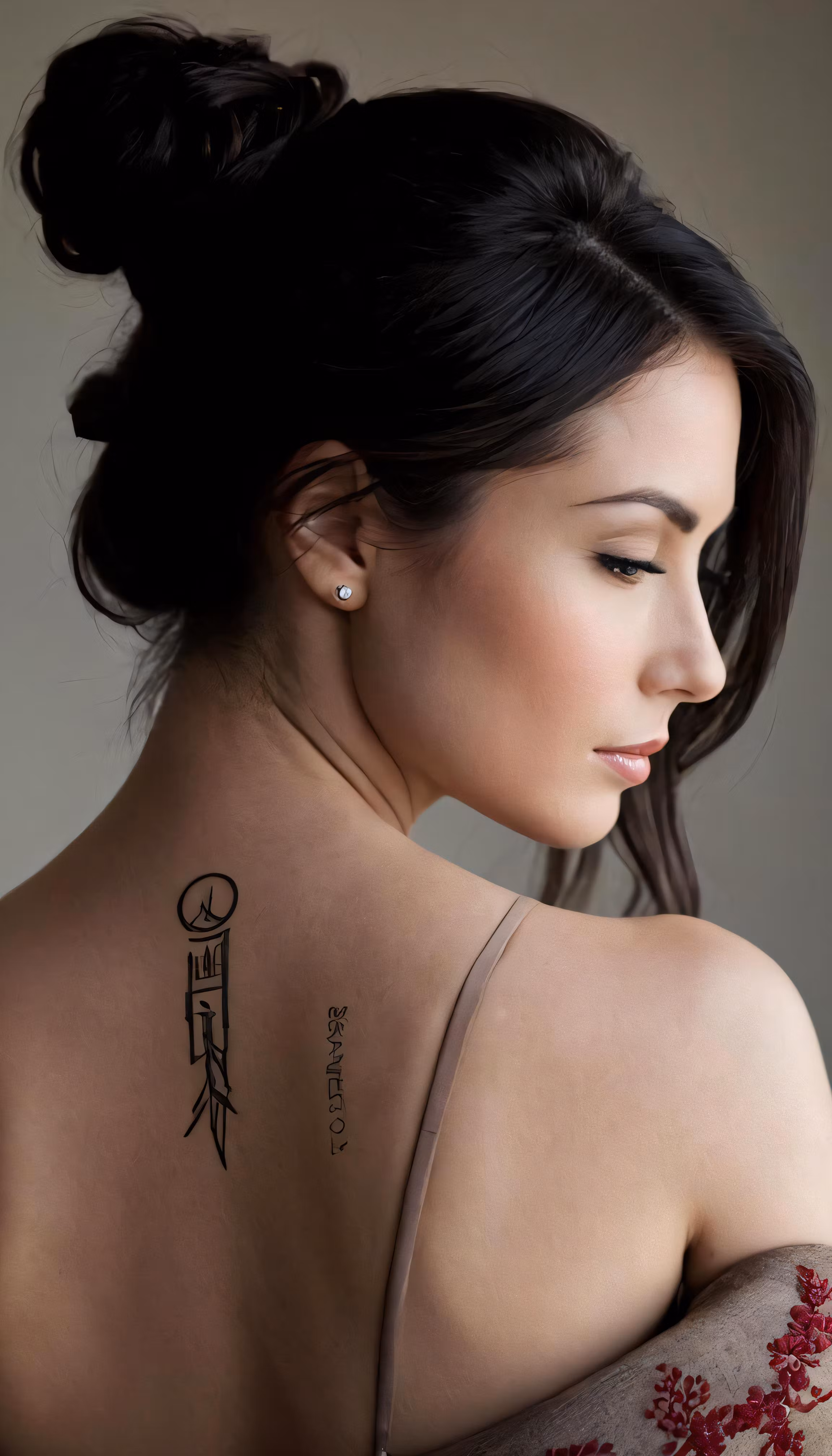 High resolution picture, free to use, woman with a traditional chinese tattoo