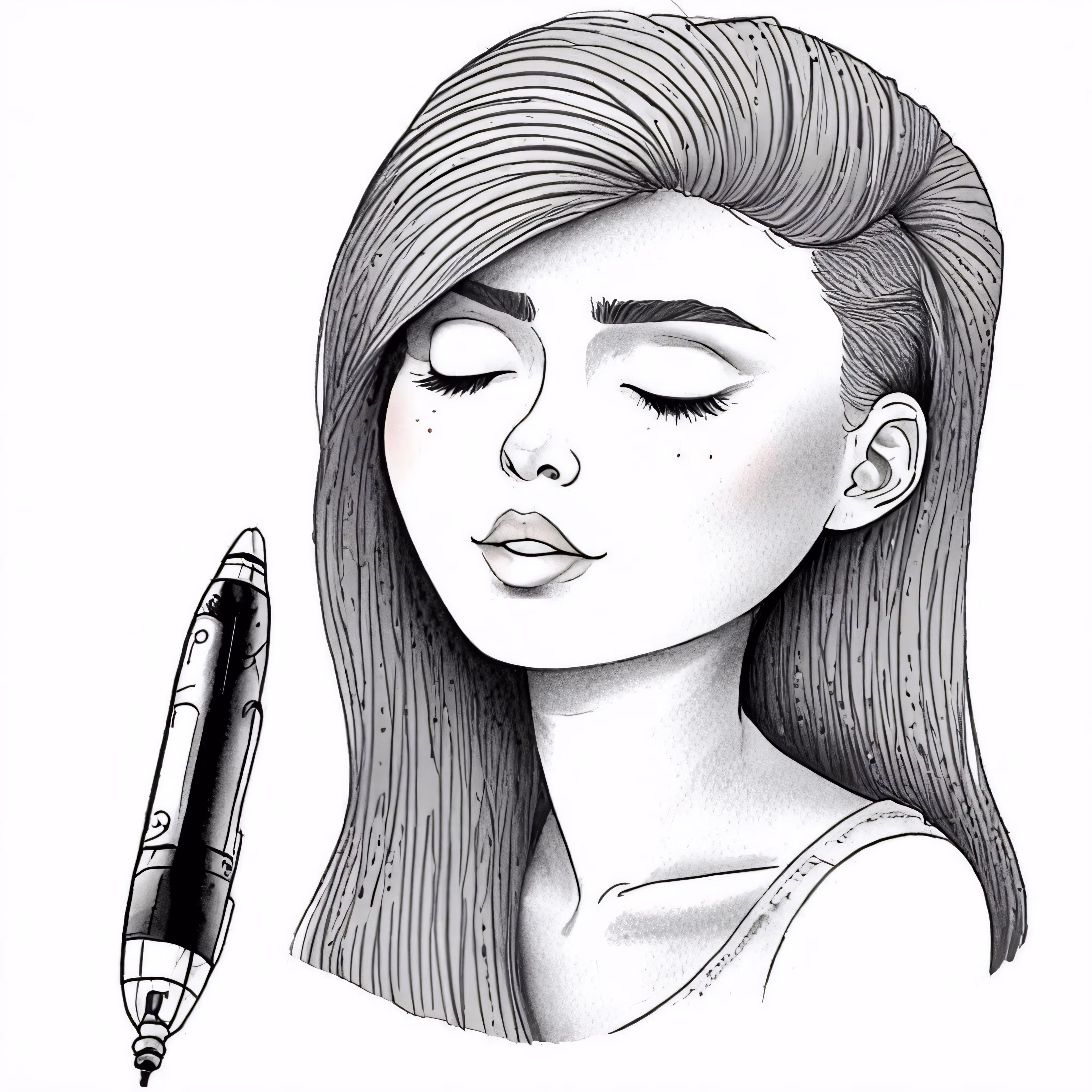 High resolution picture, free to use, woman with eye closed and a pen next to her