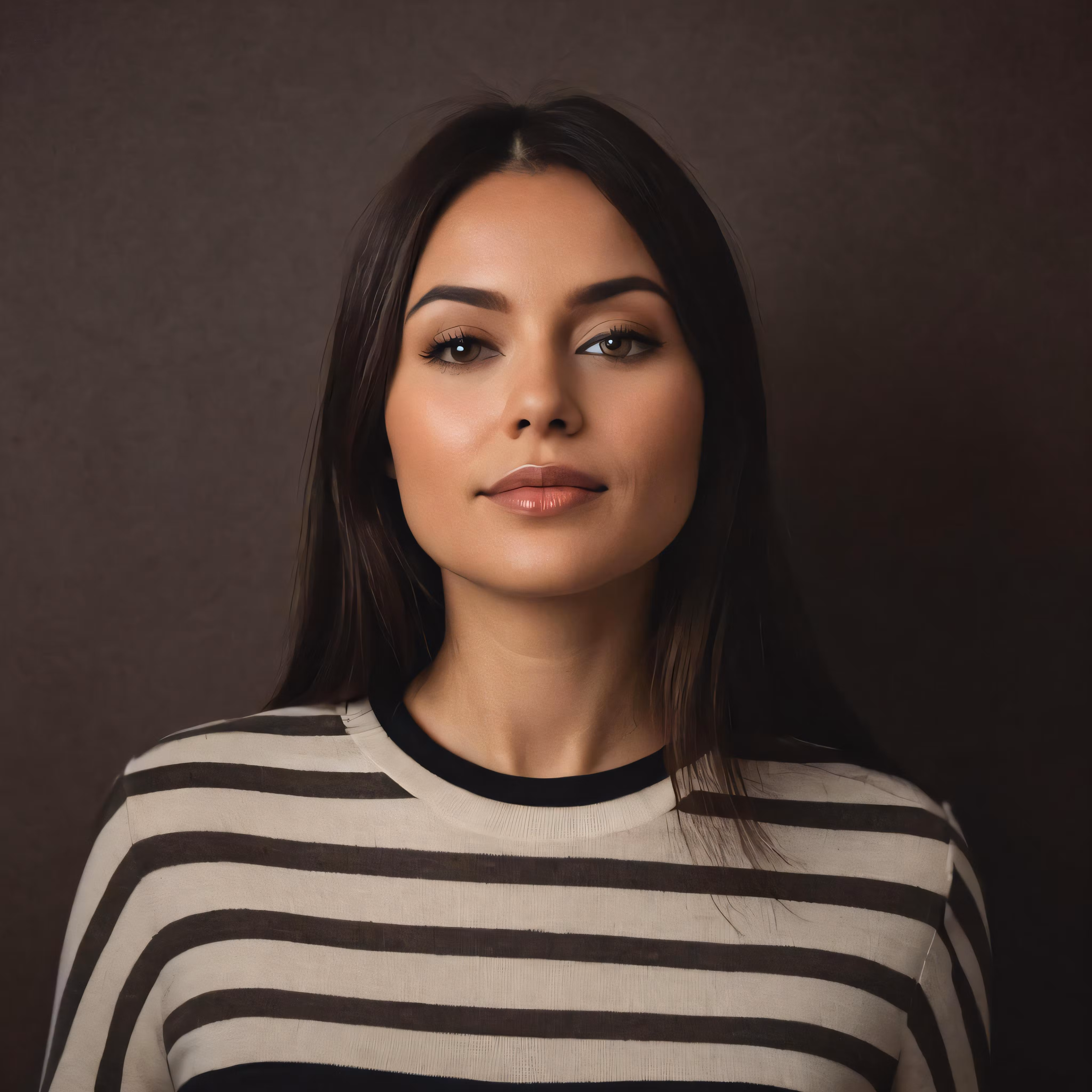 High resolution picture, free to use, woman with eyes closed with stripes sweater