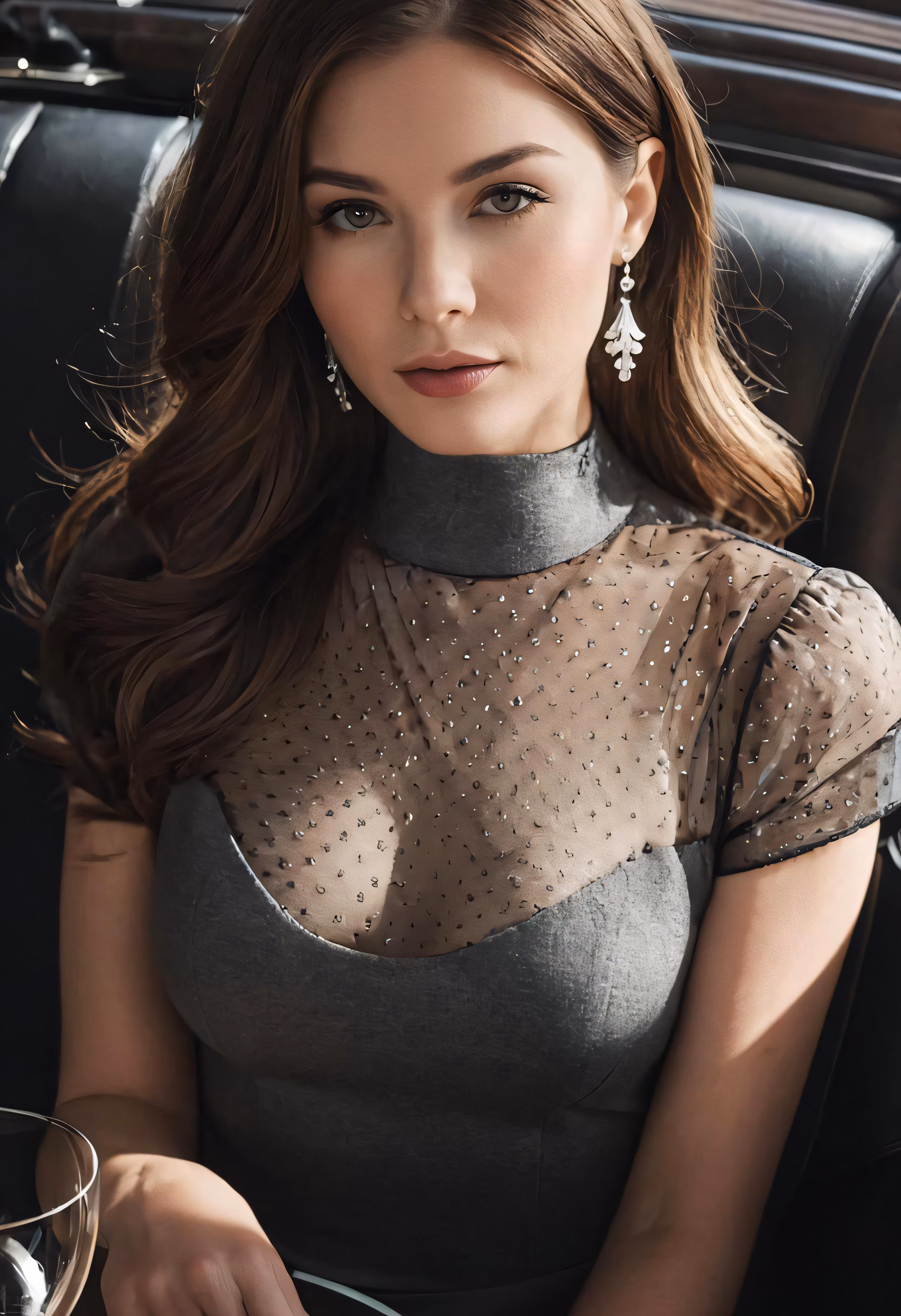 High resolution picture, free to use, woman with long brown hair wearing grey shirt