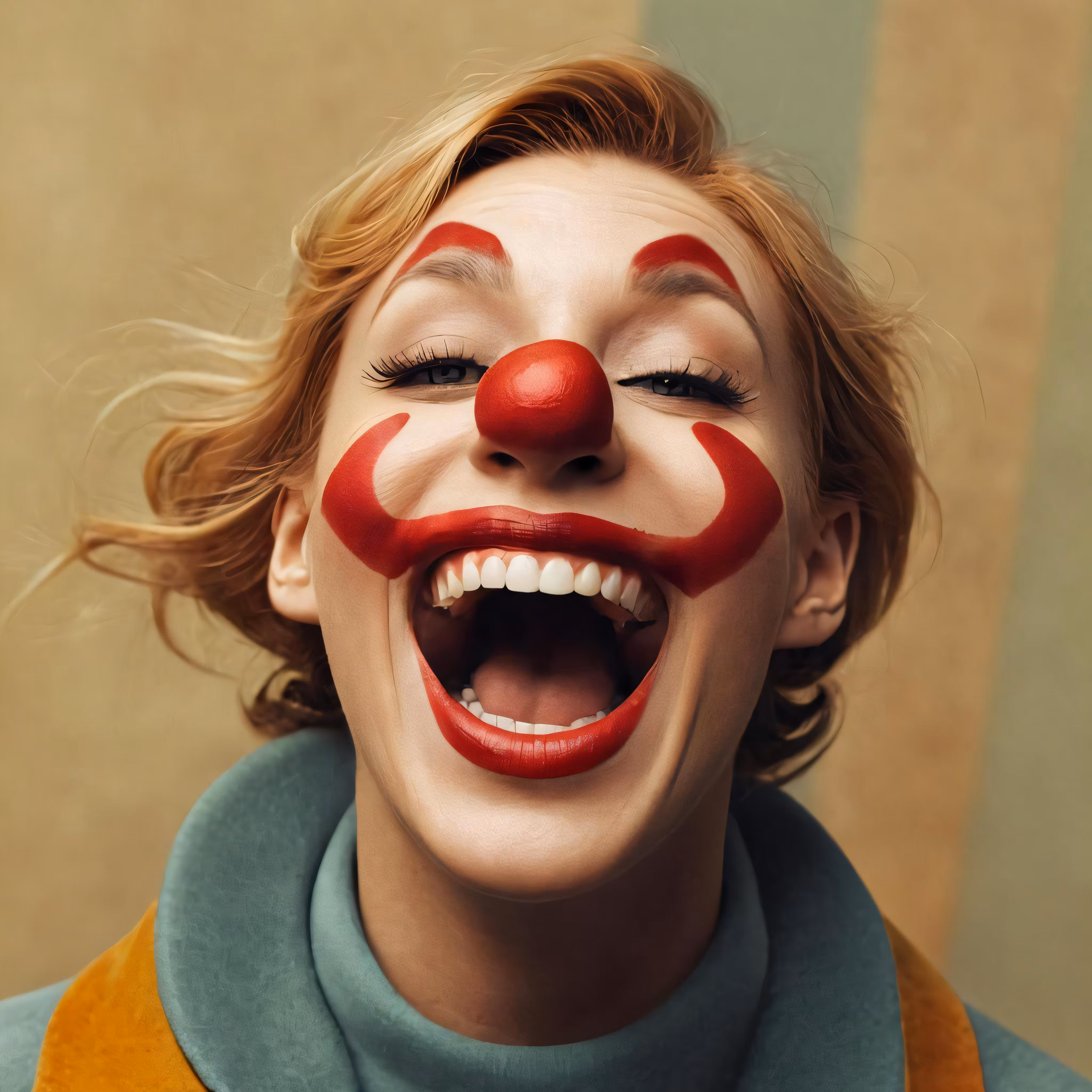 High resolution picture, free to use, woman with red clown nose painted and smiling