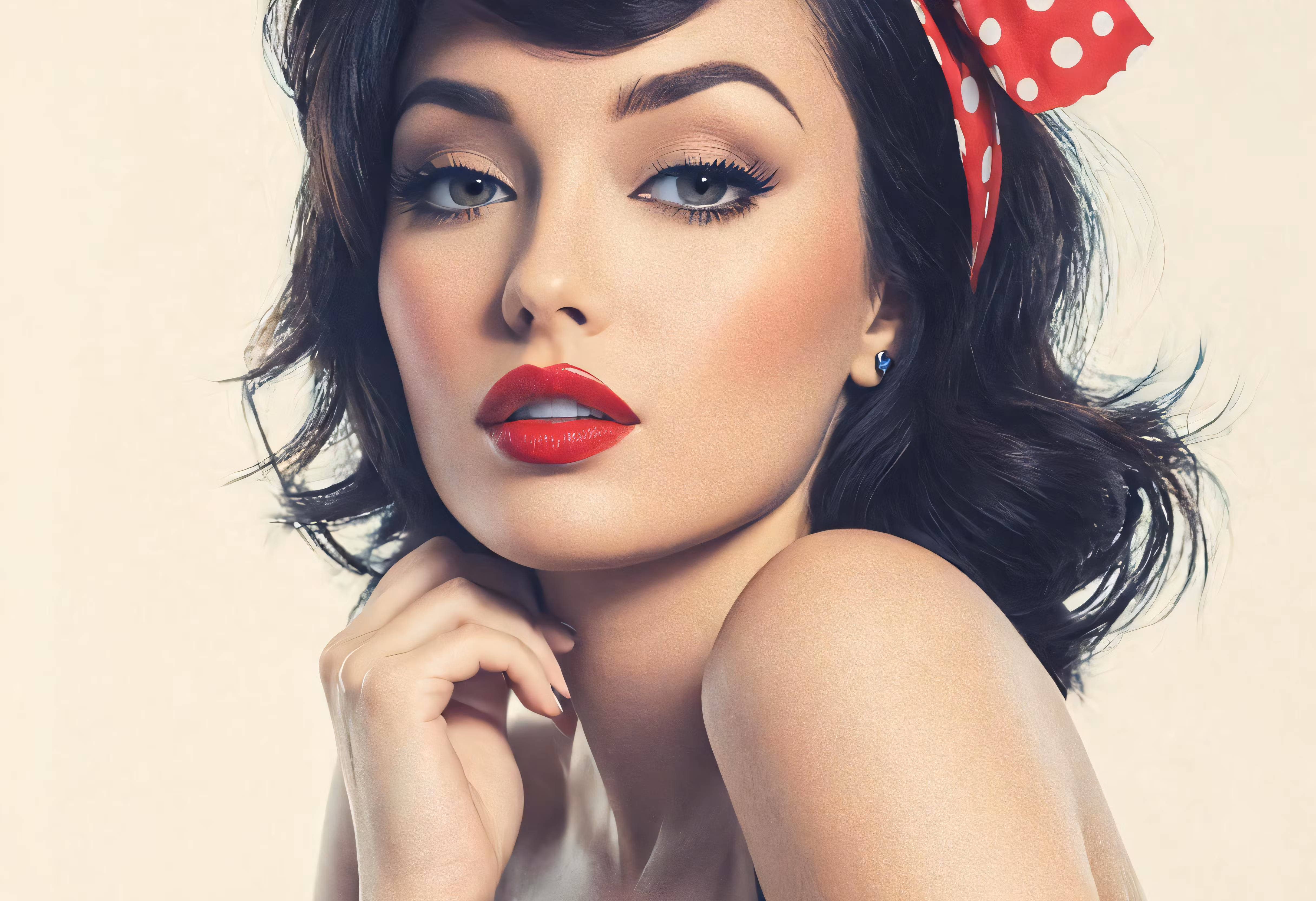 High resolution picture, free to use, woman with red lips wearing polka dot headband