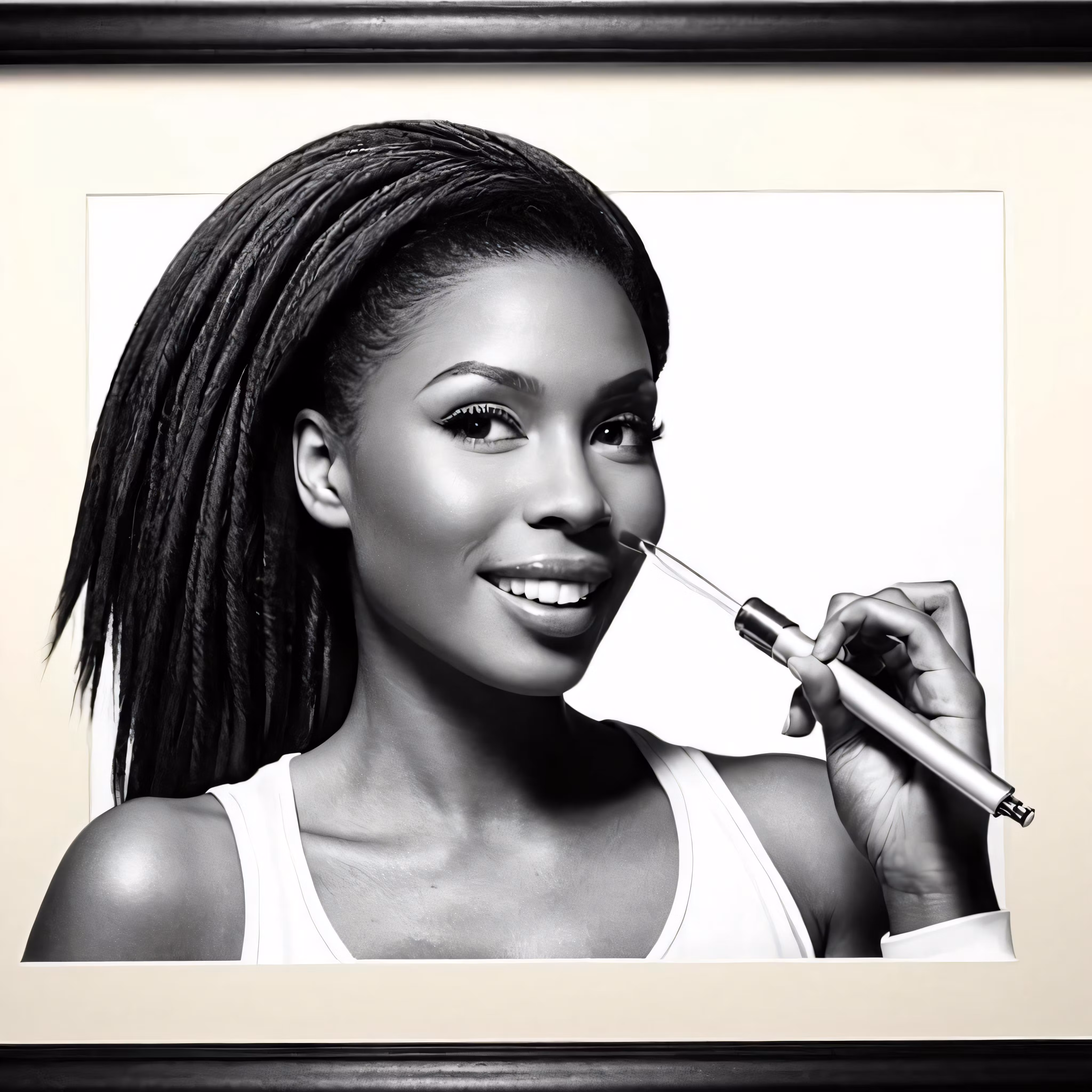 High resolution picture, free to use, woman with toothbrush and pencil smiling in black and white