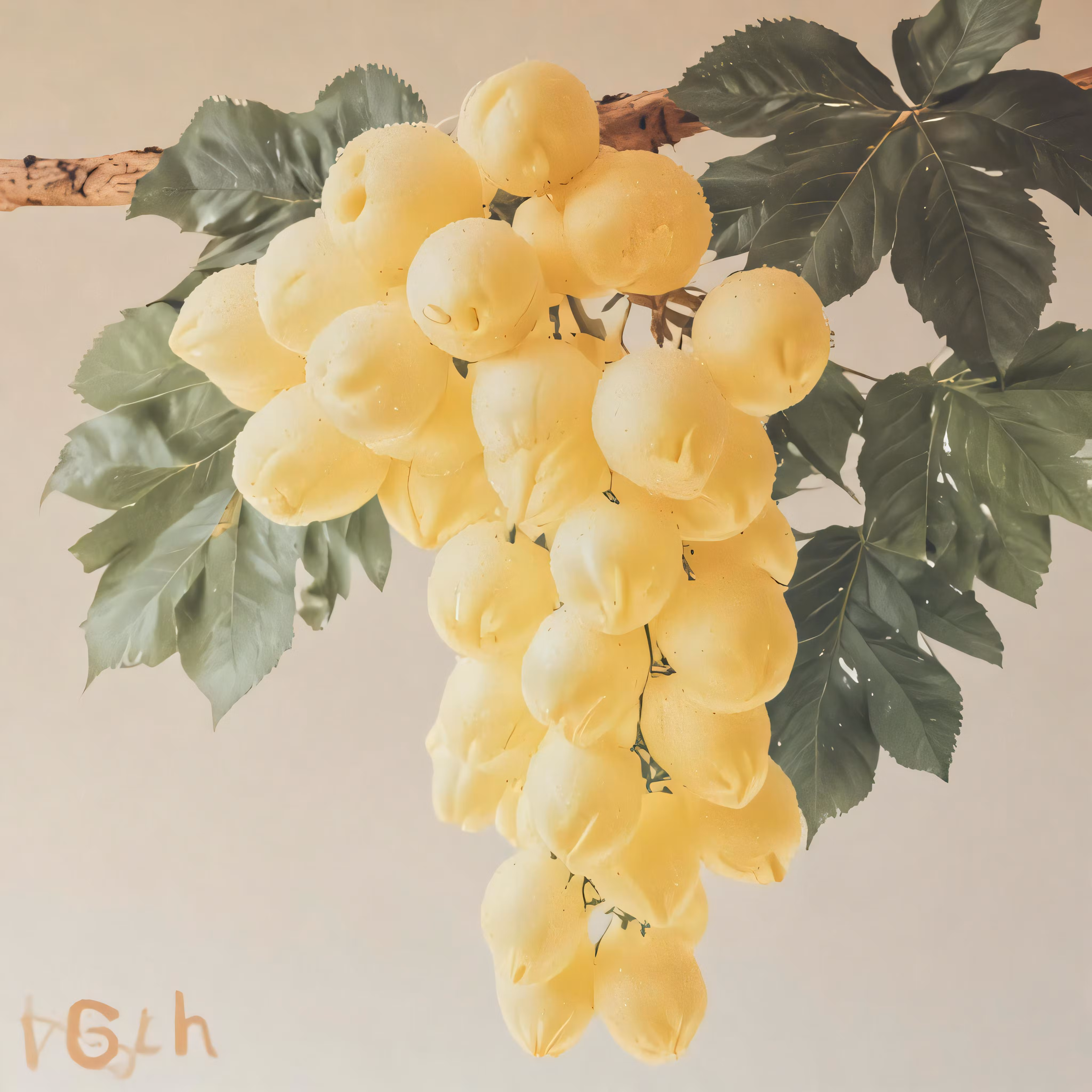 High resolution picture, free to use, yellow grapes with leaves are displayed against a white background