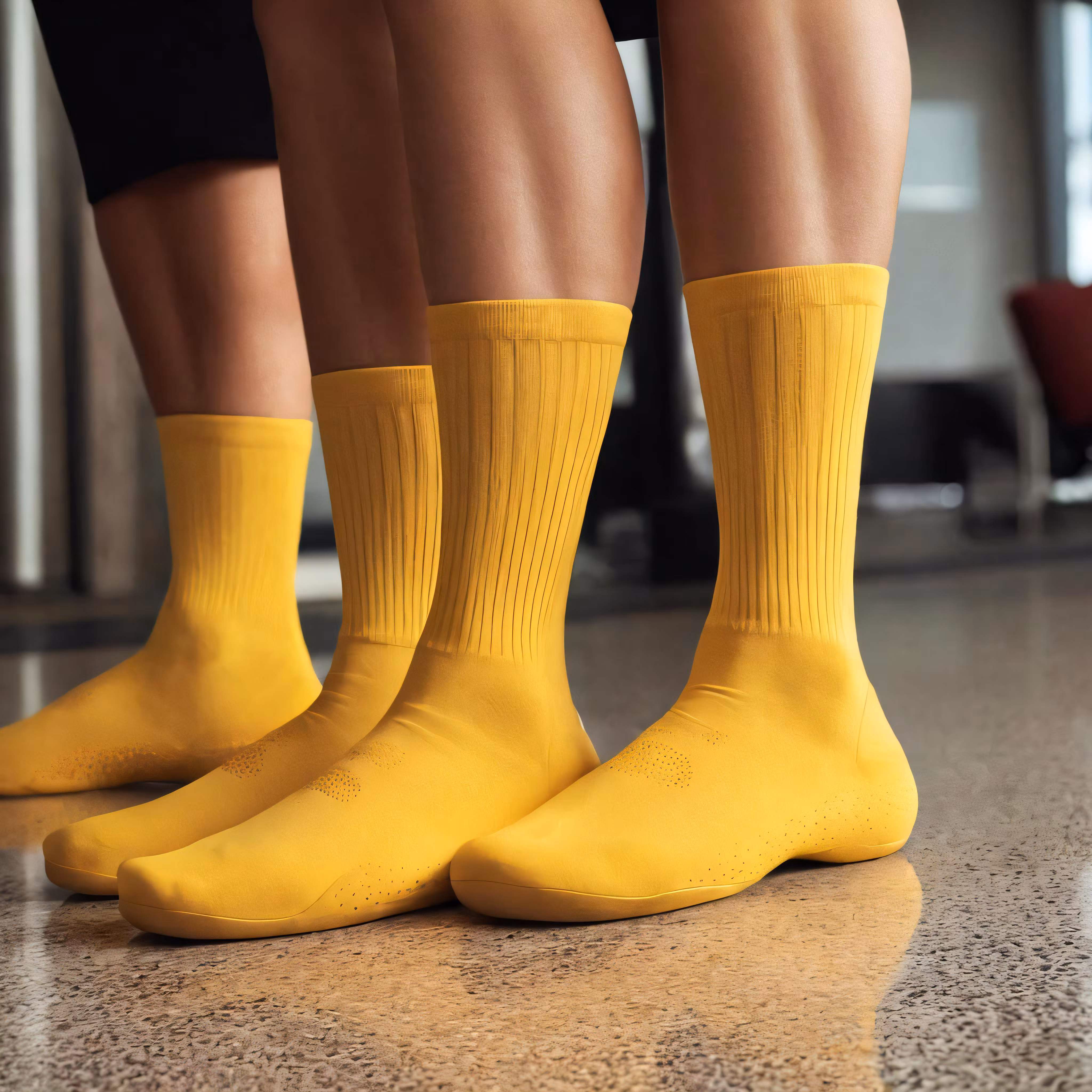 High resolution picture, free to use, yellow socks are worn in front of a pair of feet