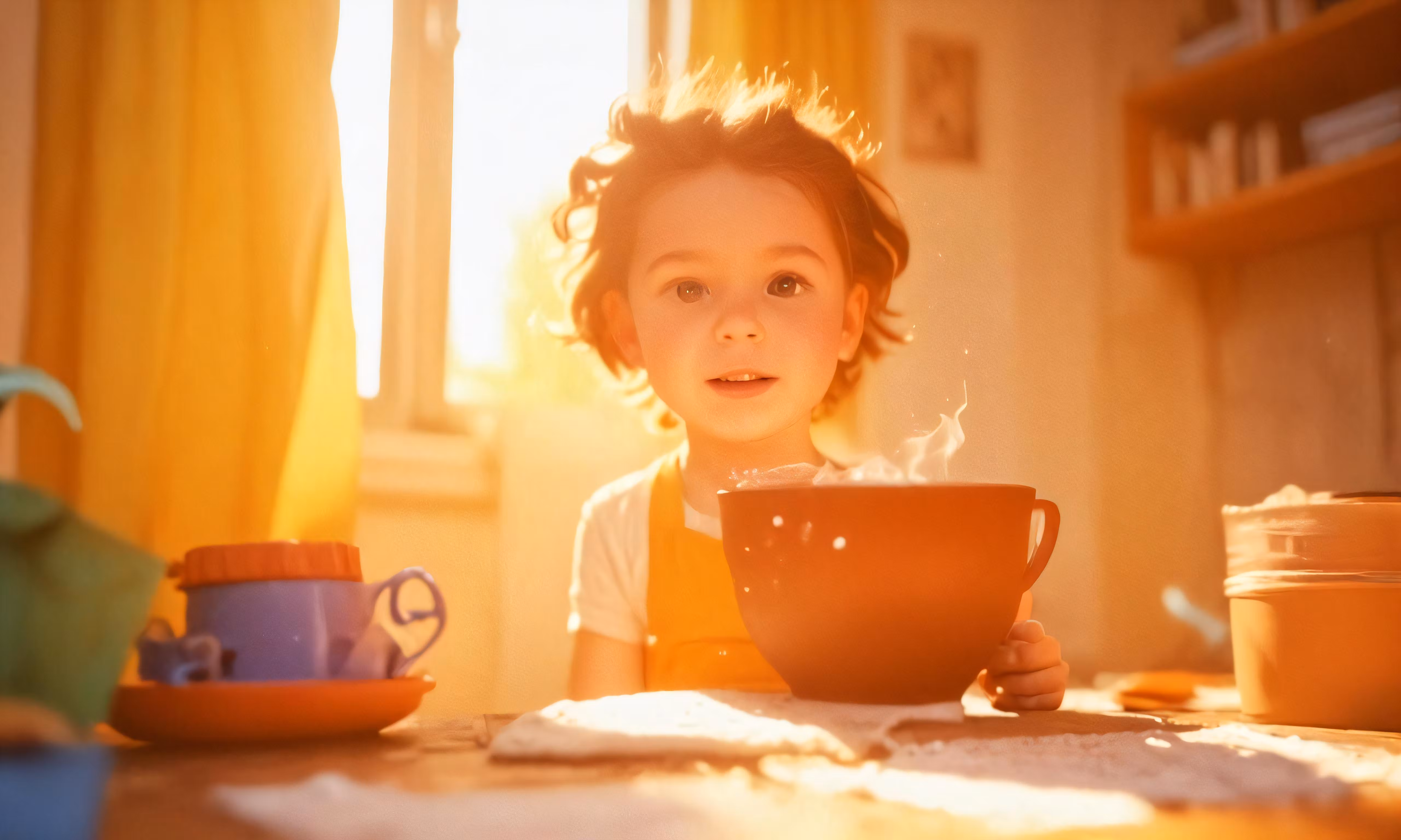 High resolution picture, free to use, young child with brown hair drinking from coffee cup