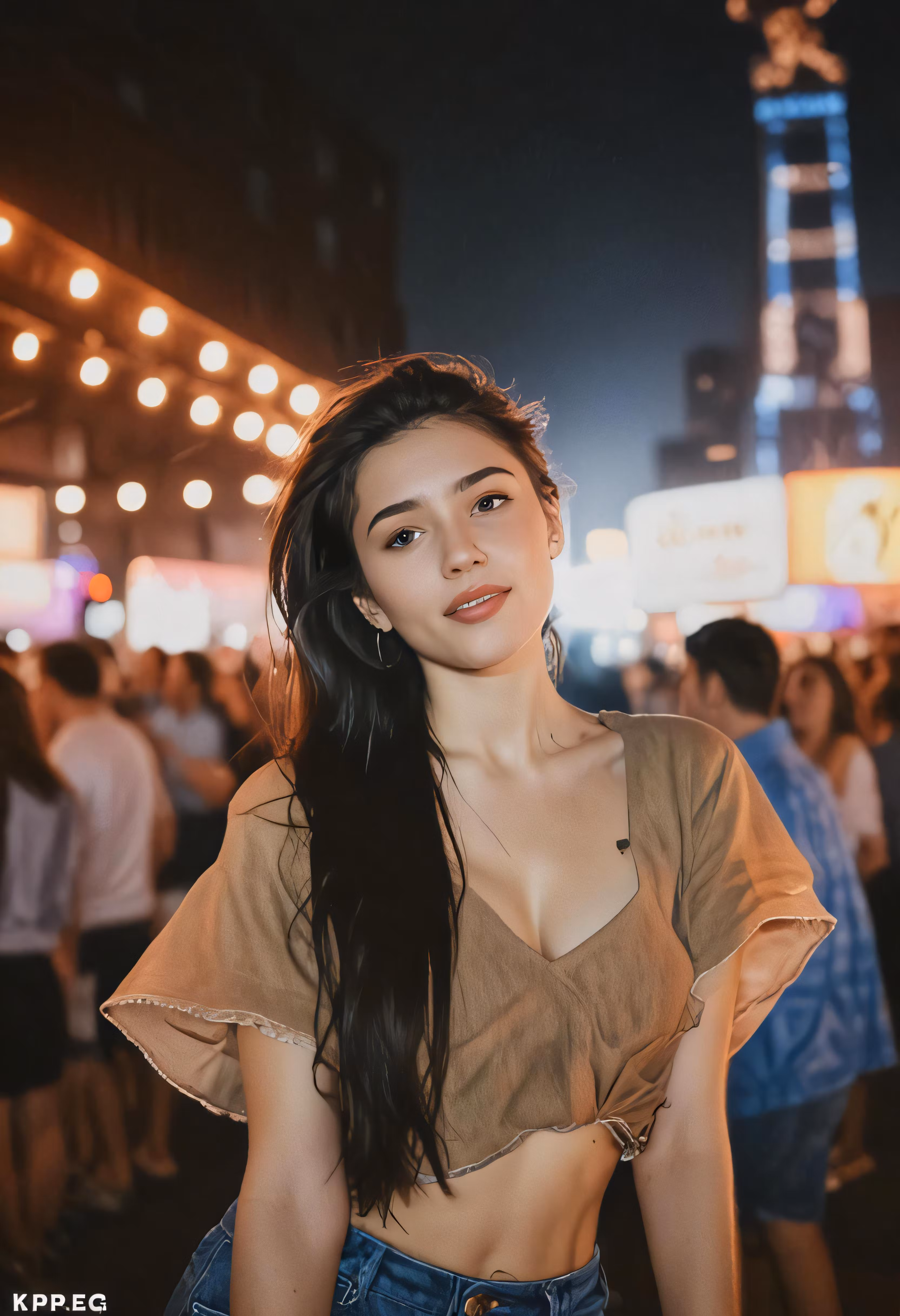 High resolution picture, free to use, young lady standing in front of crowd at night