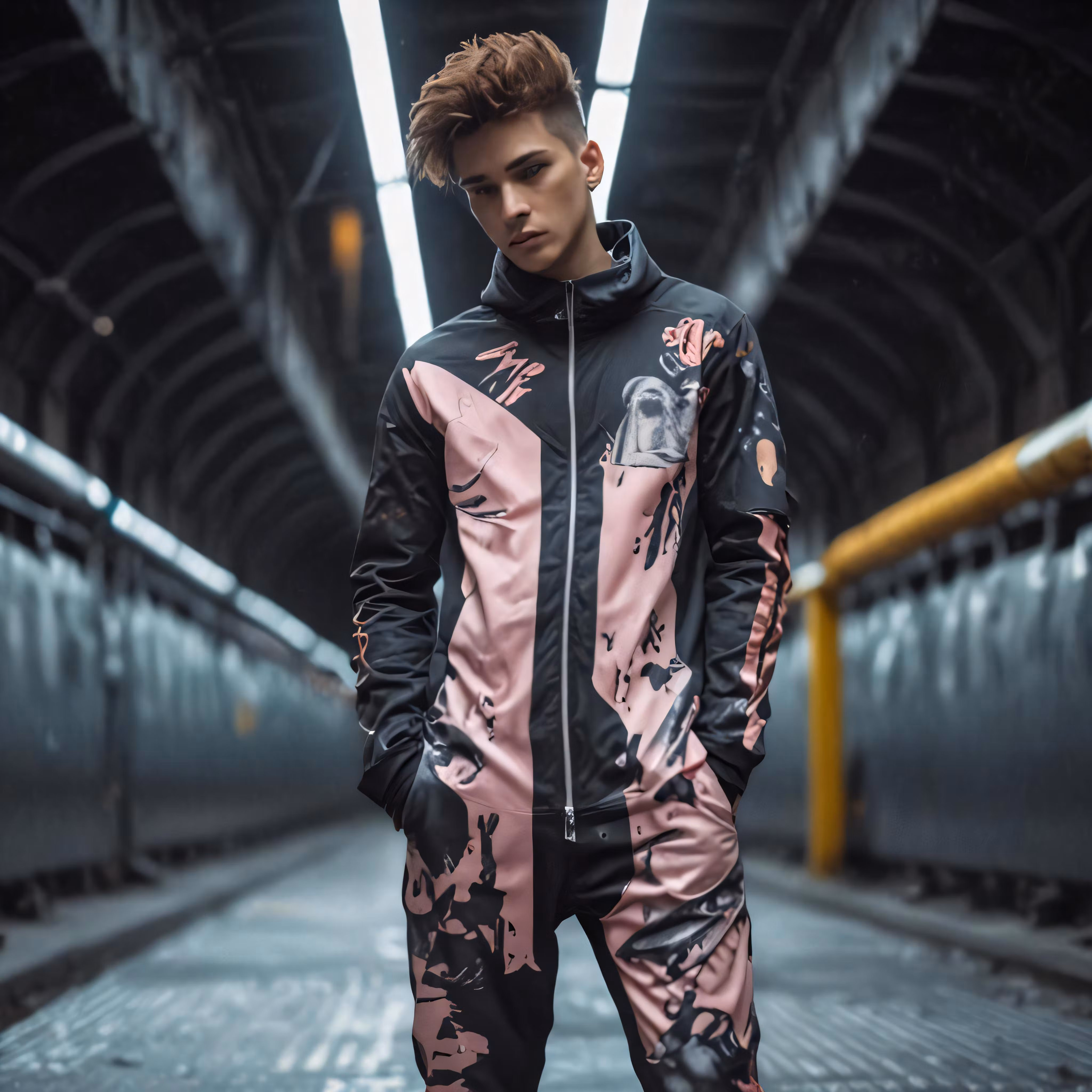 High resolution picture, free to use, young man in colorful clothing in subway station