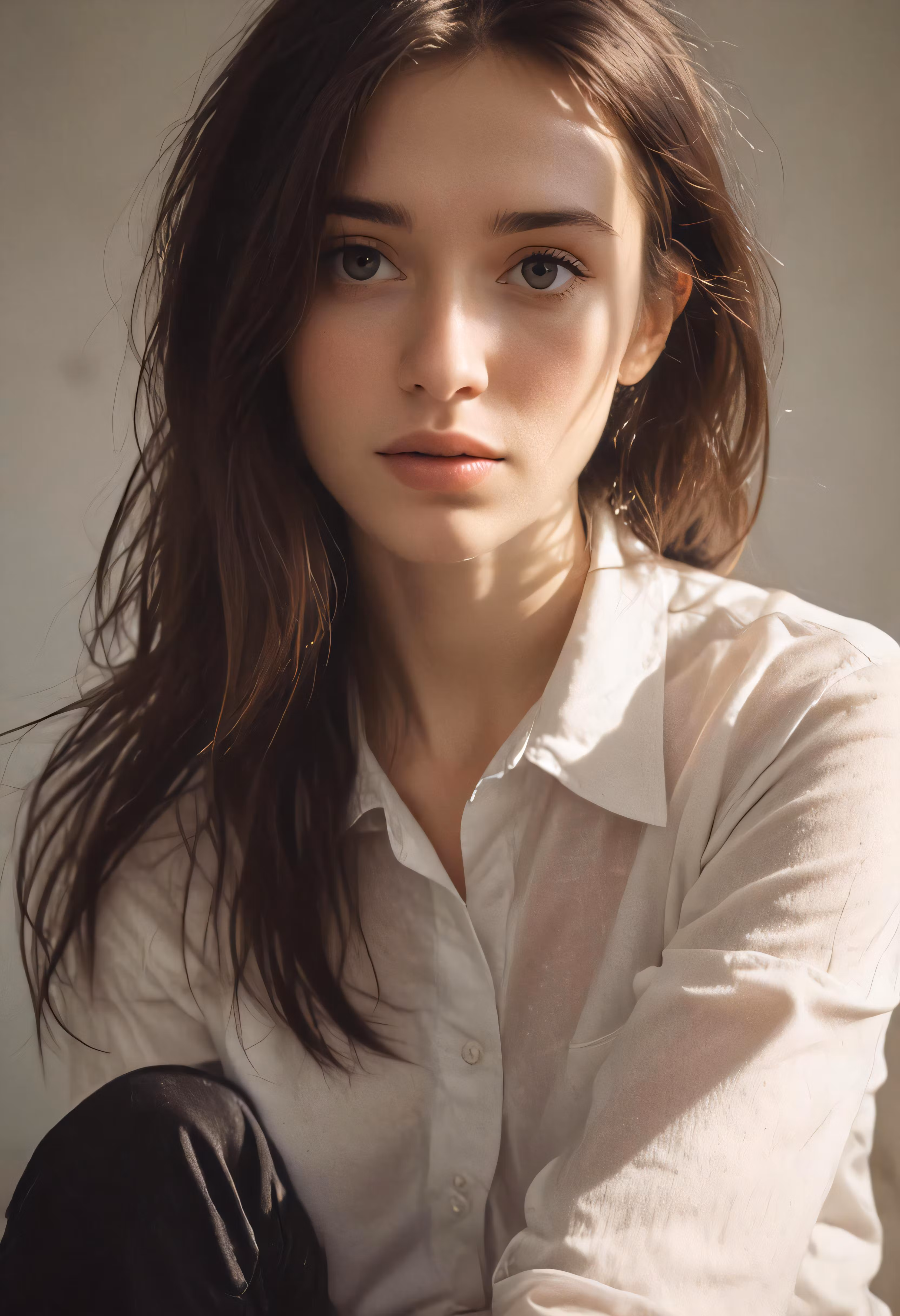 High resolution picture, free to use, young woman in shirt and gloves posing for the camera