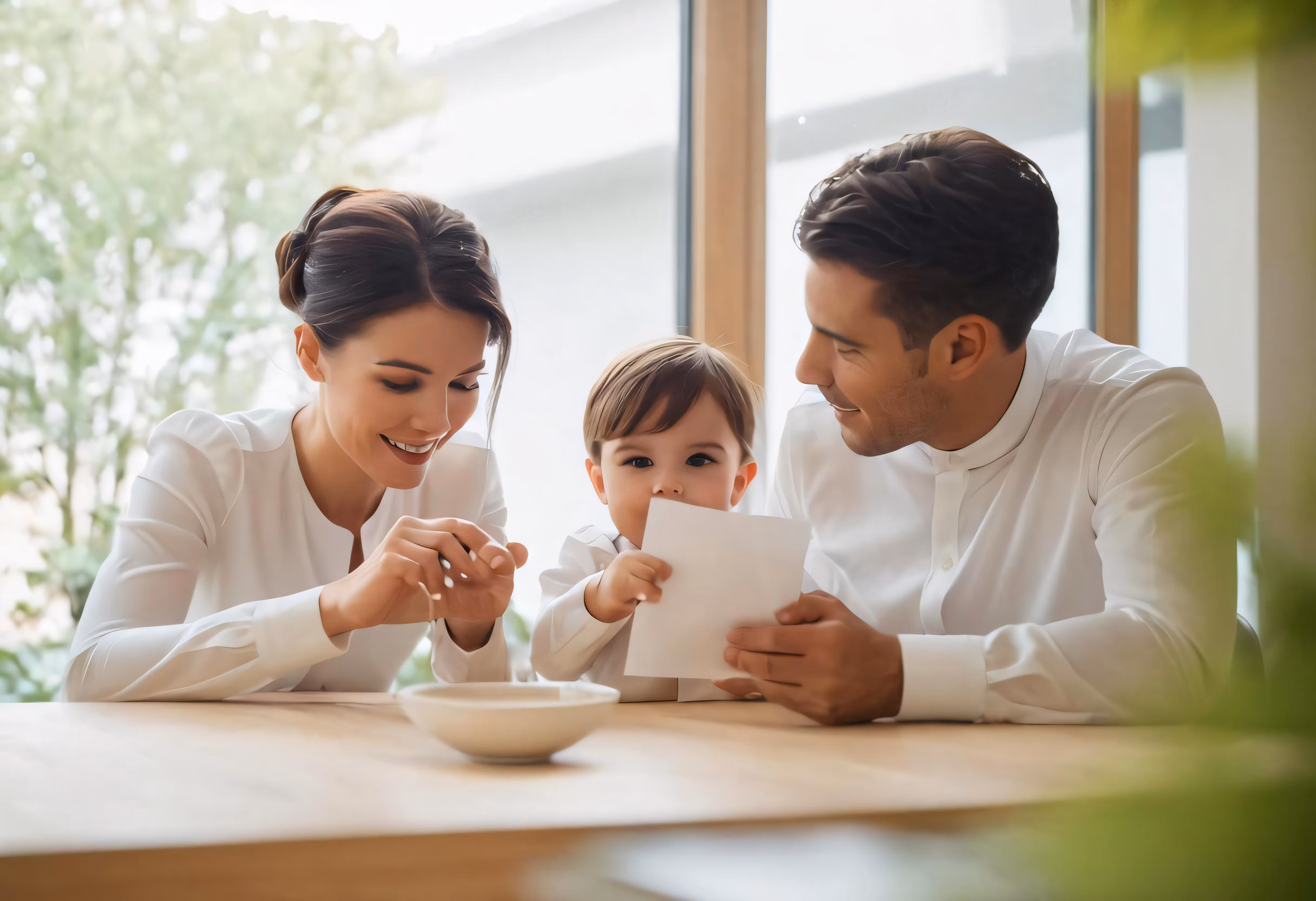 High resolution picture, free to use, young woman sitting with parents in kitchen while cutting food
