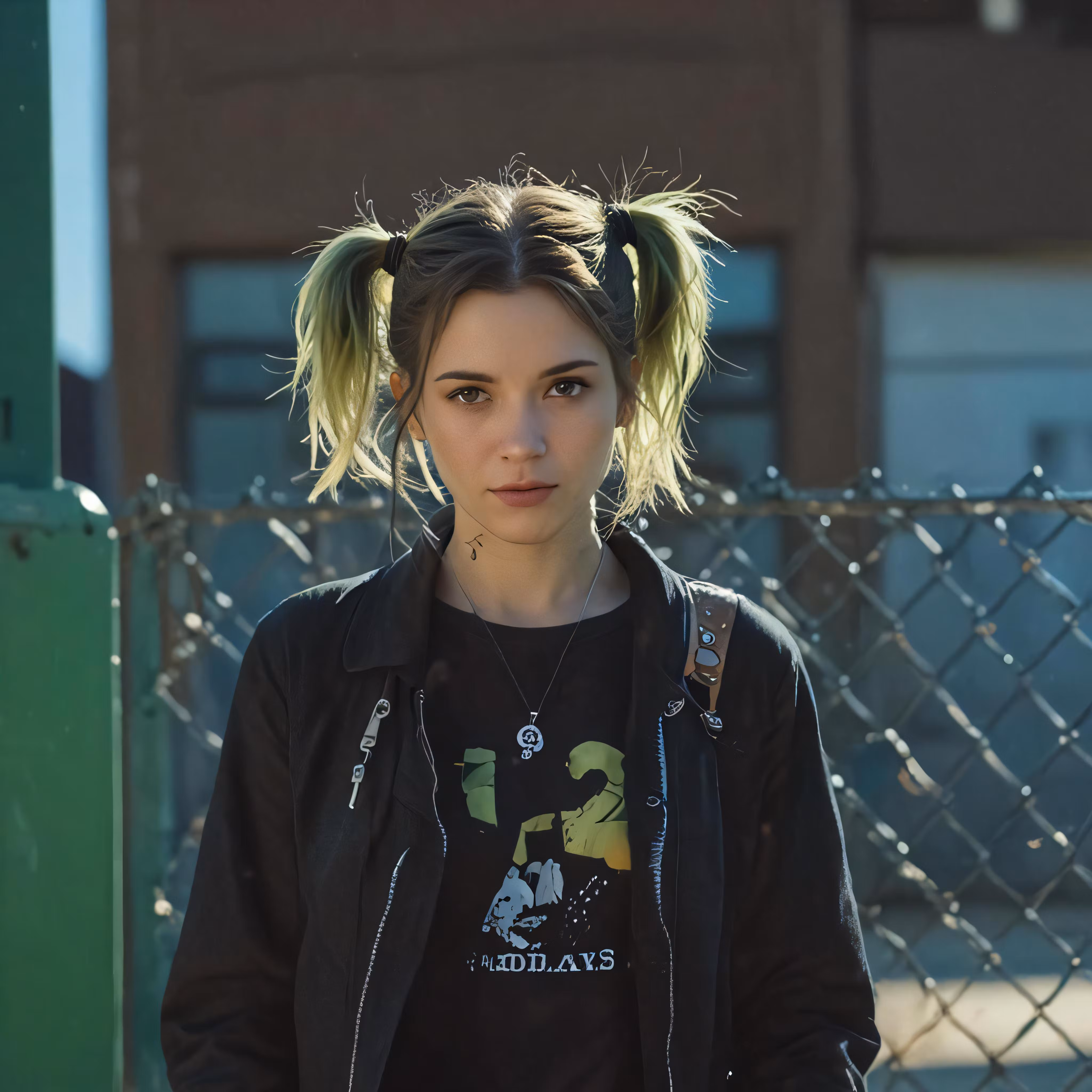 High resolution picture, free to use, young woman with hair pinned in pigtails looking off camera
