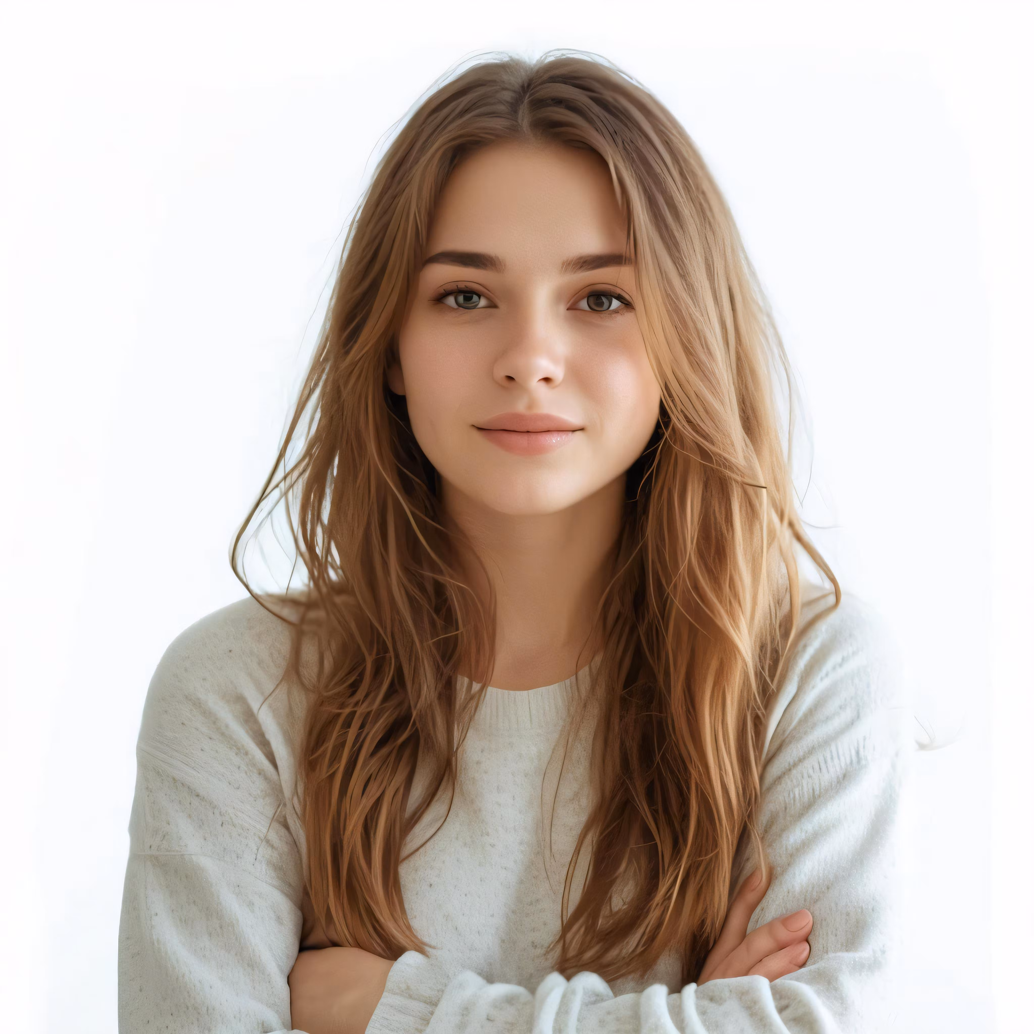 High resolution picture, free to use, young woman with long hair in white top standing with arms crossed